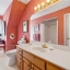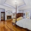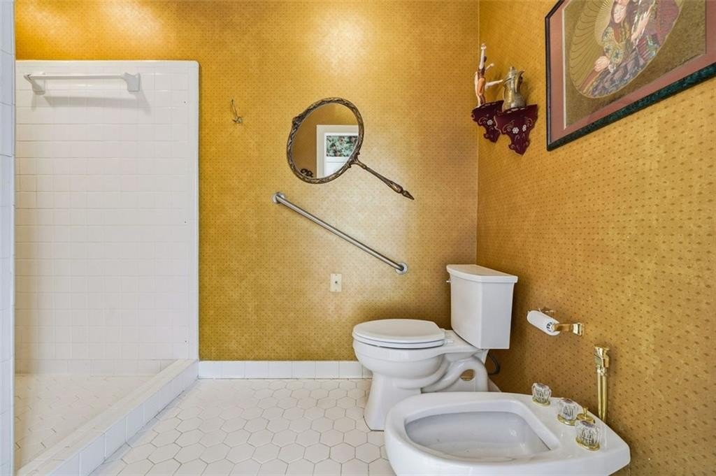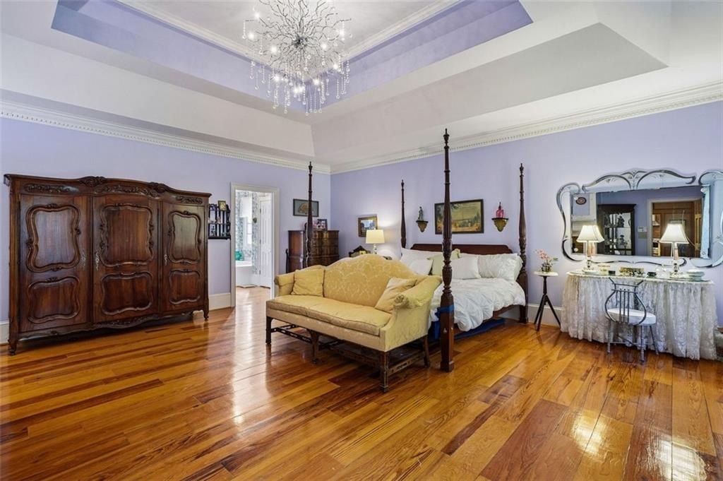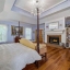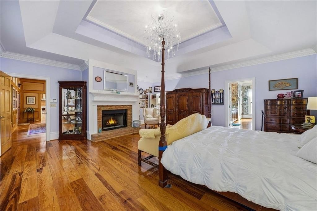 The main-level owner’s suite impresses with tray ceilings, a fireplace, and a relaxing sitting area. The luxurious en suite bath offers dual raised-bowl vanities, an oversized Jacuzzi tub, a tiled walk-in shower with dual shower heads, and a private water closet with both toilet and bidet. Three separate closets, including a large walk-in, provide abundant storage.