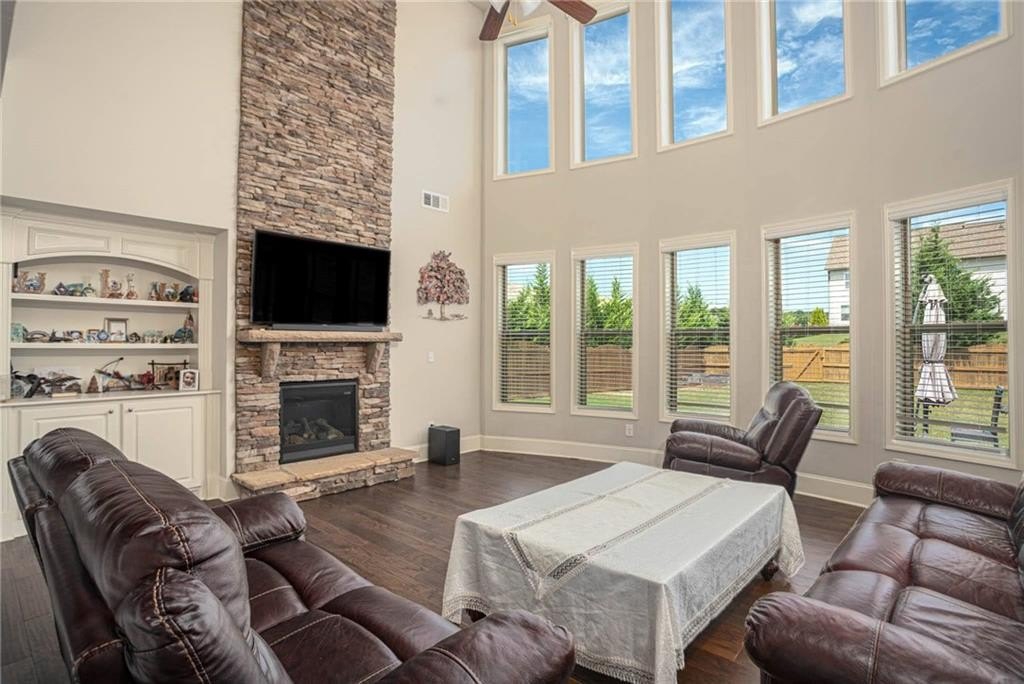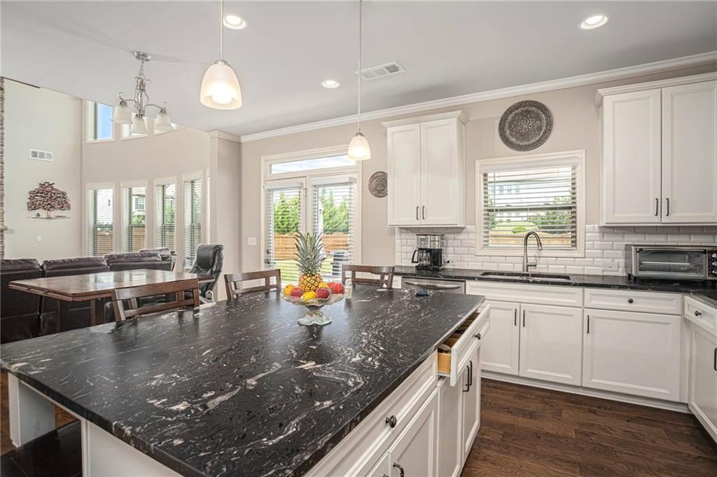 Introducing this gorgeous 5bed/4bath modern beauty, nestled in charming community of Cumming with full amenities; Including a pool, child’s splash area and playground. Close to shopping and entertainment. West Forsyth Schools, close to Midway Park, Big Creek Greenway, Sawnee Mtn, YMCA, Vickery Village, etc. This Fieldstone plan has a formal dining & 2 story living room with bay windows, great for entertainment. Corner lot that gives you a lot of natural light for interior. Spacious open kitchen just off of the great room. Kitchen features 42" cabs w/Double Oven, Granite C'tops, Pendant lights, & Oversized island. Guest suite on main, and bonus room that can be converted into the 6th bedroom. Large Master Suite w/ sitting room and large WIC. Deluxe owner's bath w/dual vanity, sep. shower & sep. soaking tub. Rare floorpan in the subdivision that offers 2 story Living/family room with bay windows. Huge level and fenced backyard. Original owner that maintained the property very well. Walking distance to the gorgeous community pool and playground.