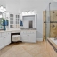 Upstairs, the luxurious owner’s suite offers a fireplace, sitting room, renovated bath, and custom walk-in closet. Three additional bedrooms and another updated bath complete the upper level.