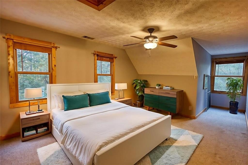Welcome to Turtle Cove! This charming 3-bedroom, 2-bath home features an open kitchen and living room, two bedroom downstairs, an ensuite primary bedroom upstairs, two versatile flex spaces—one behind the kitchen and a lofted area upstairs—and sits on a wooded lot with ample parking. Enjoy all appliances included (including the washer/dryer), an expansive front porch, and the privacy of a serene neighborhood. Residents have access to neighborhood amenities, including a 9-hole executive golf course, swimming pool, five beaches, four boat ramps, tennis courts, a playground, and a clubhouse with lounge and restaurant. Your perfect retreat awaits!