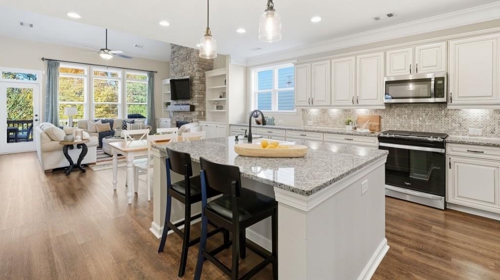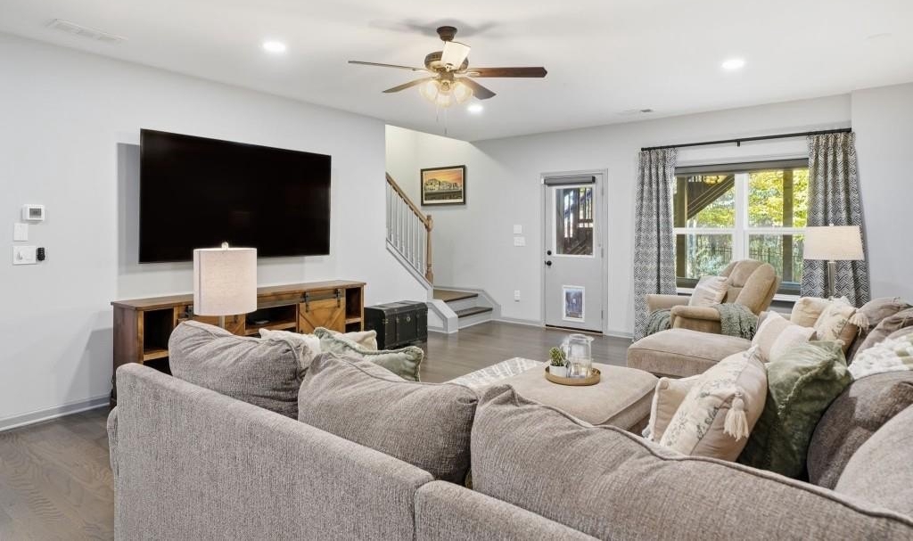MOTIVATED SELLER! Welcome to this Hard-to-Find 5 BR/4.5 BA home with a MASTER ON MAIN situated on a premium cul-de-sac lot! Special features incl., a Welcoming front porch, 2-story family room w/stacked-stone fireplace, built-in bookcases/cabinets, plantation shutters, finished basement, and high-end epoxy- finished garage floor. The spacious Island Kitchen, perfect for entertaining, features beautiful granite countertops, custom cabinets, and a custom walk-in pantry complete with a wine refrigerator. The formal dining room is currently being used as an office. The upstairs loft/flex space w/built in cabinets is perfect for home schooling, art studio, or kids' hangout. There are three large bedrooms upstairs, each with a walk-in closet. A Jack and Jill bath and one bdrm w/it's own private bath. The finished basement includes a media room, game room, workout room, full bath, and a large unfinished room for extra storage. Basement is also plumbed for a bar or second kitchen. You will love the extended oversized deck and covered patio (w/dry underdecking), and the level/fenced backyard that backs up to green space. Neighborhood amenities include a pool, playground, pavilion w/grill, and fun community events. Convenient to I-575, Downtown Woodstock and Roswell. Located in top school districts, including "Blessed Trinity" and "River Ridge", this home is sure to impress! Call today for a quick showing.