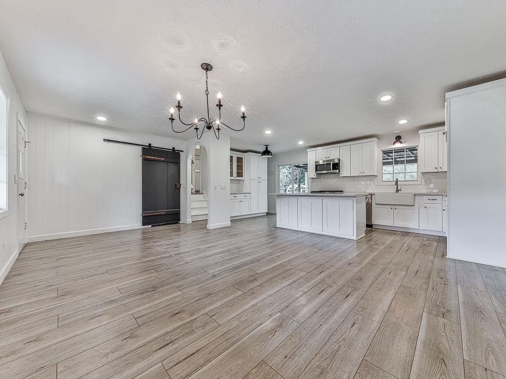 As you enter, you'll be greeted by luxurious new plank vinyl flooring and a soft, neutral color palette that fosters a bright and welcoming ambiance, enhanced by modern lighting throughout. The kitchen has been completely transformed, now featuring an added island that opens seamlessly to the living room—making it a chef's paradise.