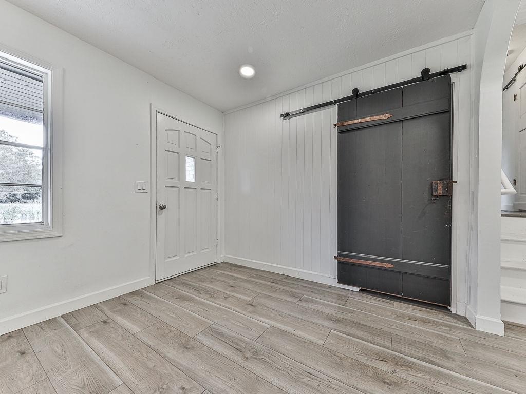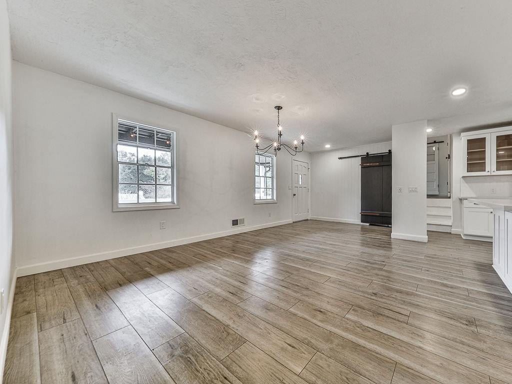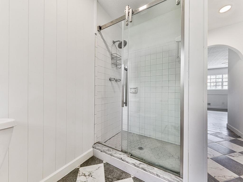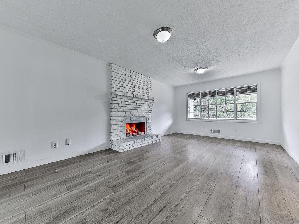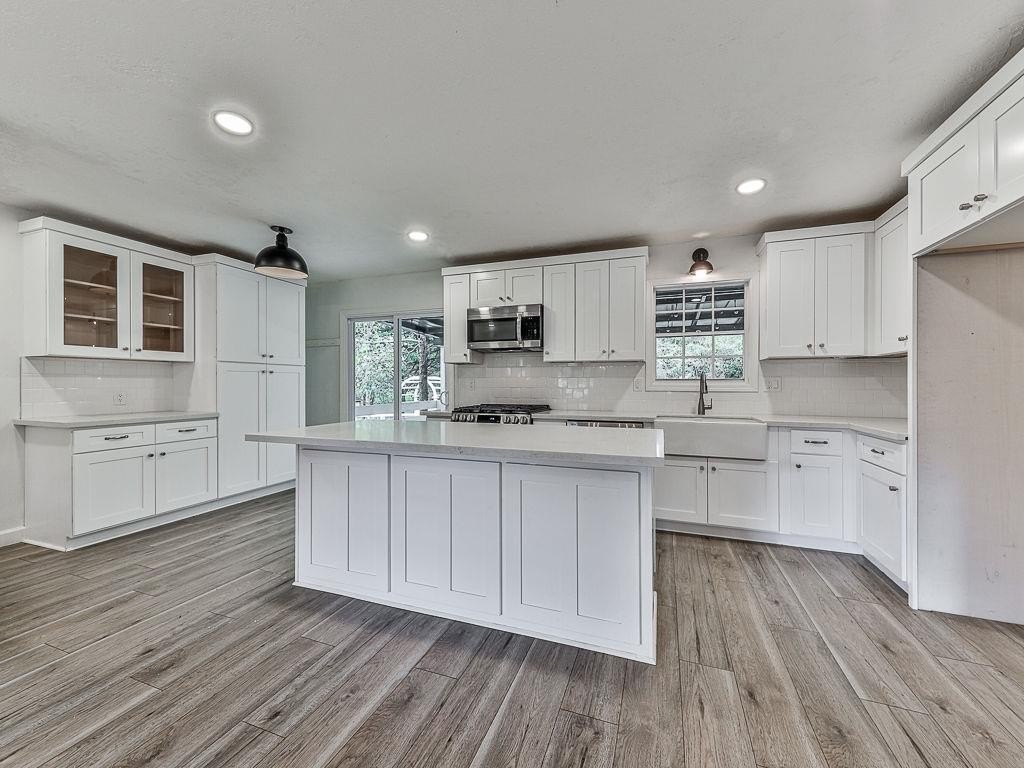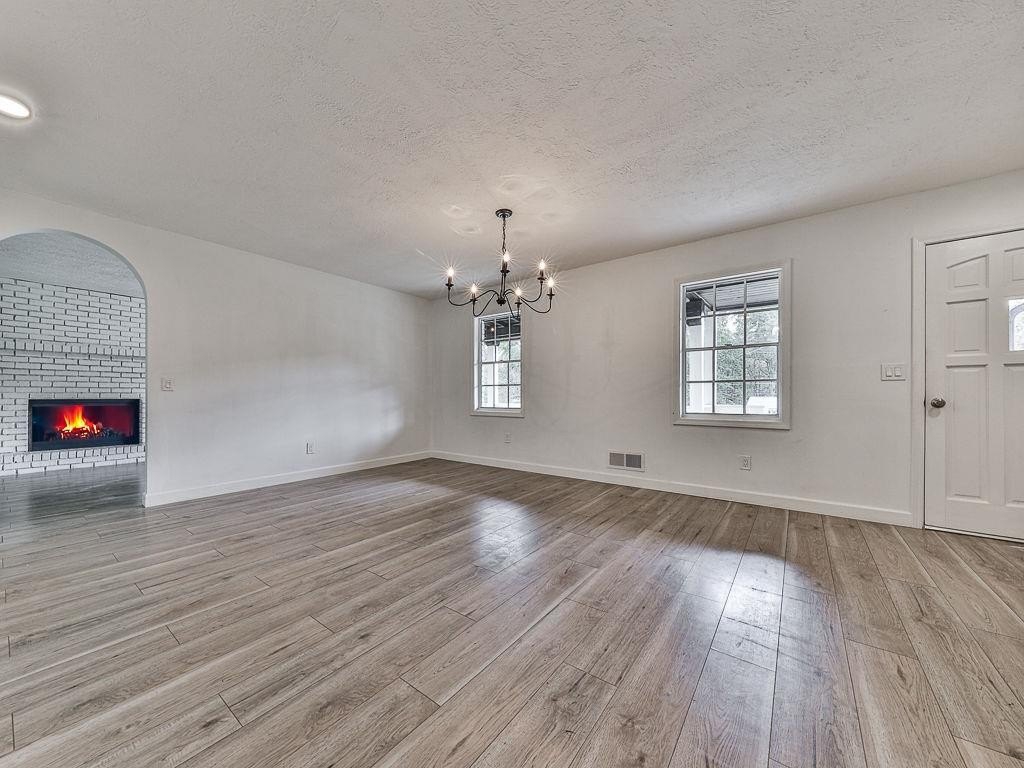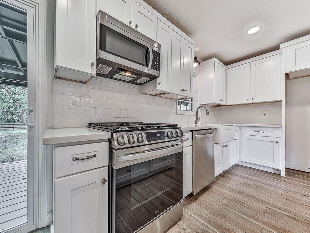 Welcome to this beautifully remodeled home only a few minutes from the very popular Downtown Woodstock! The exterior showcases a fresh coat of paint, complemented by sleek new black gutters, custom wood shutters, and horizontal plank wood railings on the front porch.