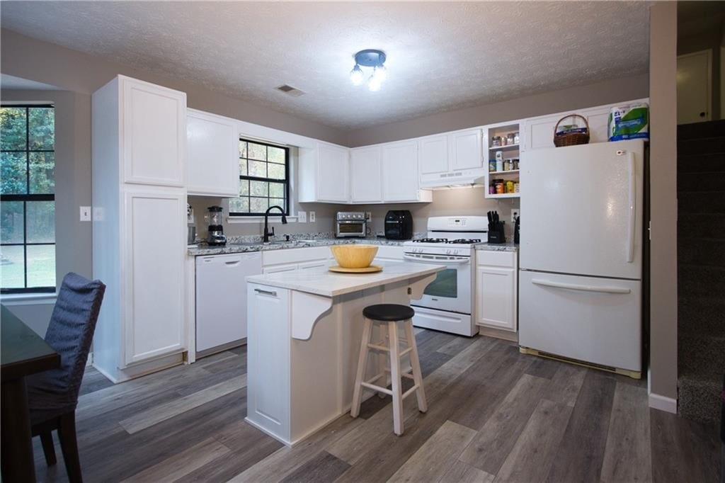4 Bedroom, 3 Bath home for sale in Loganville located in the Creekwood Community. Home sits on over 2 acres. Inside the home the Family Room features a Brick fireplace with bookshelves on both sides, and LVP flooring in Family Room and Kitchen. Kitchen has white cabinets, kitchen island, white appliances and breakfast room. 1 Bedroom on main level and 3 bedrooms upstairs. New HVAC in 2021. Outside back deck overlooks the fenced private back yard perfect for relaxing and enjoying your own private wooded oasis. Also included is a large storage building, and shed. Home is in the sought after Walton County - Loganville school district. Located close proximity to shopping and dining.