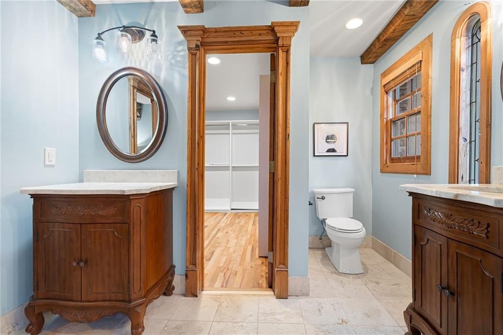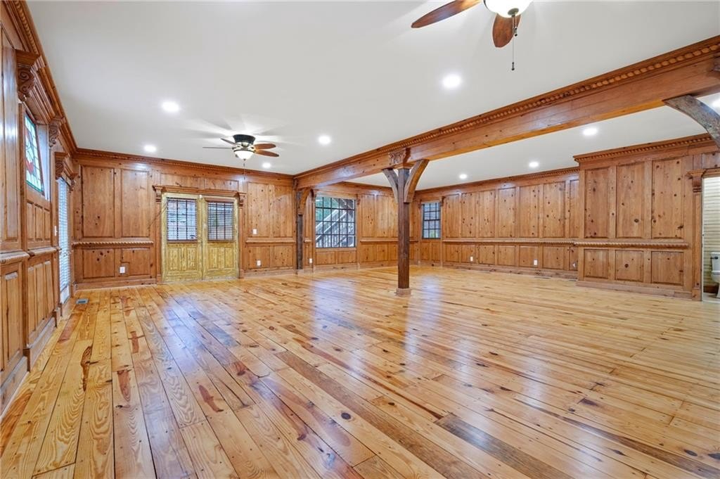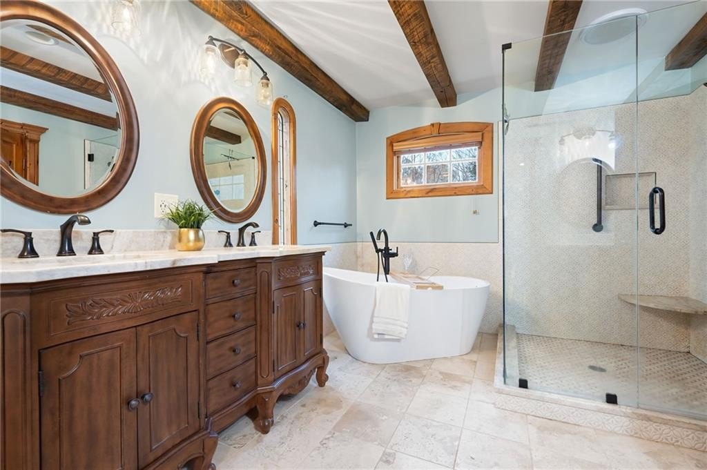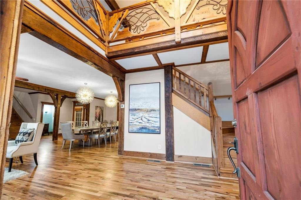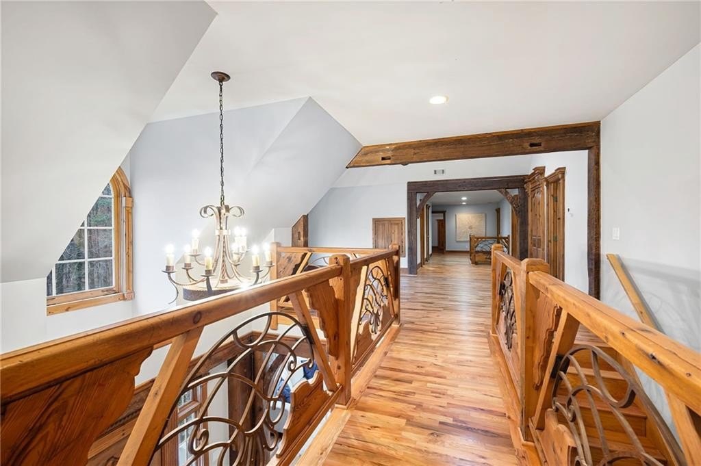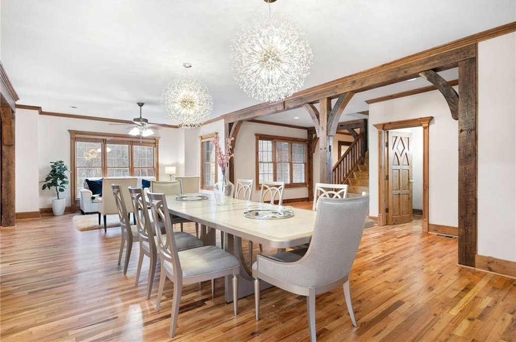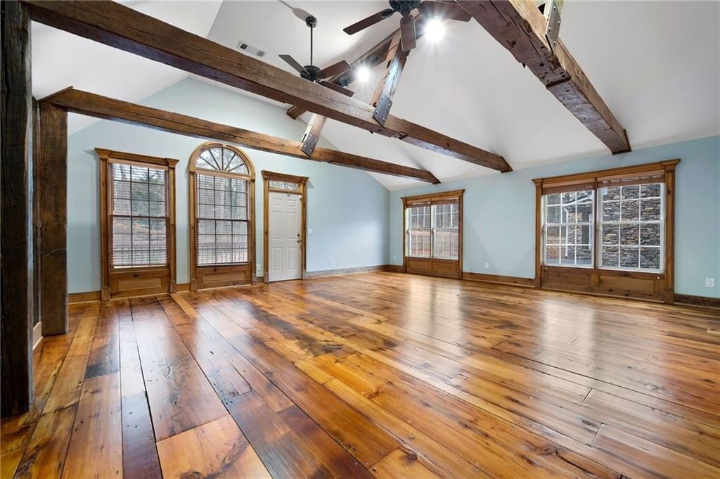 Motivated sellers are ready to make a deal! A peaceful retreat that feels worlds away that offers seclusion without sacrifice. Enjoy the best of both worlds with privacy and proximity in perfect harmony. Tucked away in a quiet neighborhood off a private road along Clark Creek, with nearly eight acres, is a custom-built estate ready for you to call home. Upon entering, you are greeted with custom architectural designs, reclaimed wood beams, and freshly finished wood flooring. The main level features an open concept kitchen and dining area that flows into the living room and office space. A 1,000 square foot bonus area, perfect for in-laws, teens, guest quarters or even a banquet hall, is equipped with a second kitchen, full bath, access to the downstairs garage, and exterior entrance. Double staircases shine more of the home's unique attributes with reclaimed wood and customized iron designs. The second level boasts two primary suites. A bridge-like walkway provides access to the first primary suite, with sitting area, and bathroom with separate soaking tub and shower. The second primary suite was used as a gym, with floor-to-ceiling mirrors installed, tons of space for equipment/furniture, and balcony access to the pool. An oversized secondary bedroom with sitting area and ensuite is situated across from the upstairs loft that's flooded with natural light and fantastic property views. Two additional oversized bedrooms with ample closet space and access to a renovated hall bath round out the living spaces. The laundry room is conveniently located on the second floor, along with additional closet/storage space. The property is full of private amenities, including a rustic two-stall barn with new roof, fruit and nut orchard, peaceful pergola designed with swings and firepit, and gorgeous gunite pool with spa and sunning deck. Relax in the screened patio, overlooking the pool area, year-round. Additional exterior features include a batting cage, gagaball pit, expansive yard for playing and gardening, chicken coop and even a disc golf course. The main level garage is oversized and climate controlled, while the immense secondary lower-level garage can serve as a workshop, storage for boats, tractors, and four wheelers. A brand-new roof and garage doors were installed in December 2024. Two water heaters were installed in 2021, and four 3-ton HVAC units were installed in 2020. For additional access to Clark Creek Pass homeowners can consider rebuilding a bridge, that was removed in 2022, for access through Oak Pointe Estates. This property has potential for a bed and breakfast, retreat center, equestrian use and so much more. Positioned along Clark Creek, it is simply stunning in every season! The estate is ideally located within three miles of lake Allatoona and is convenient to highways 75 and 575. Less than thirty miles from Atlanta to the south, and a short scenic drive to visit the North Georgia mountains; an estate of this size and quality is hard to find. Appraised in December for over 2M, this property offers instant equity and endless possibilities.