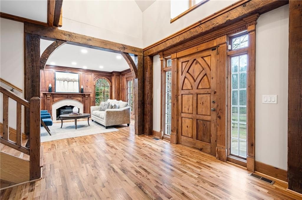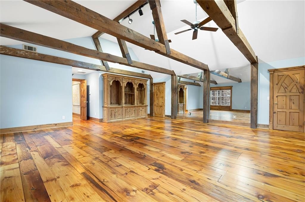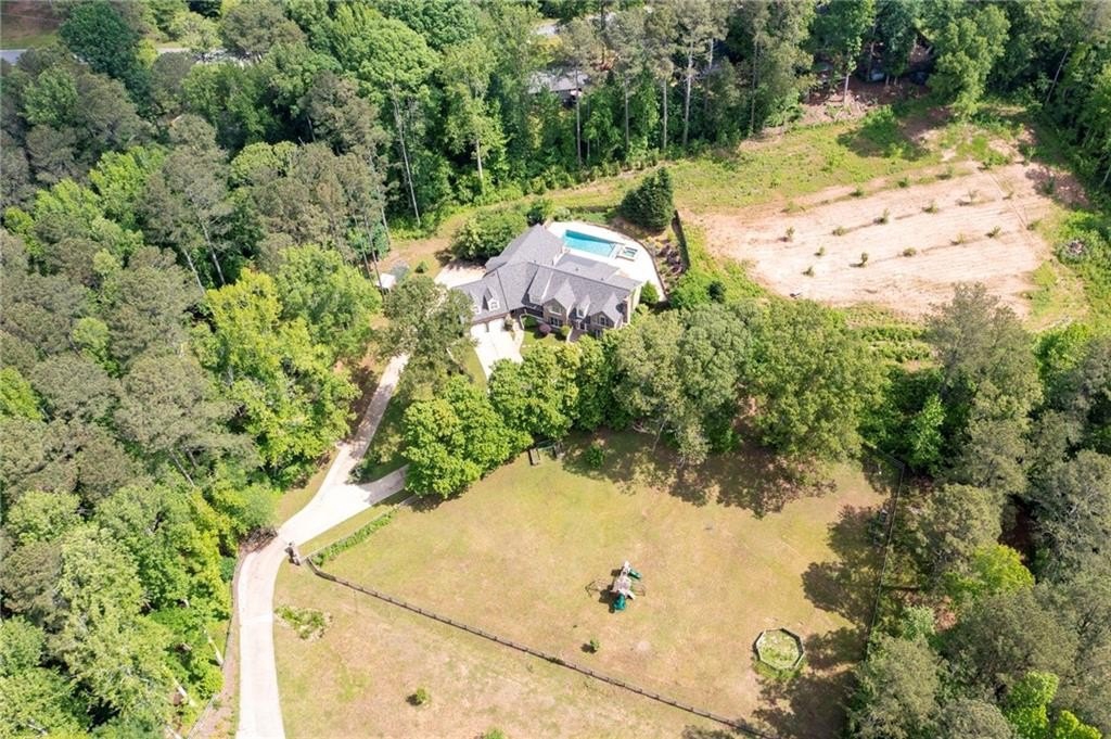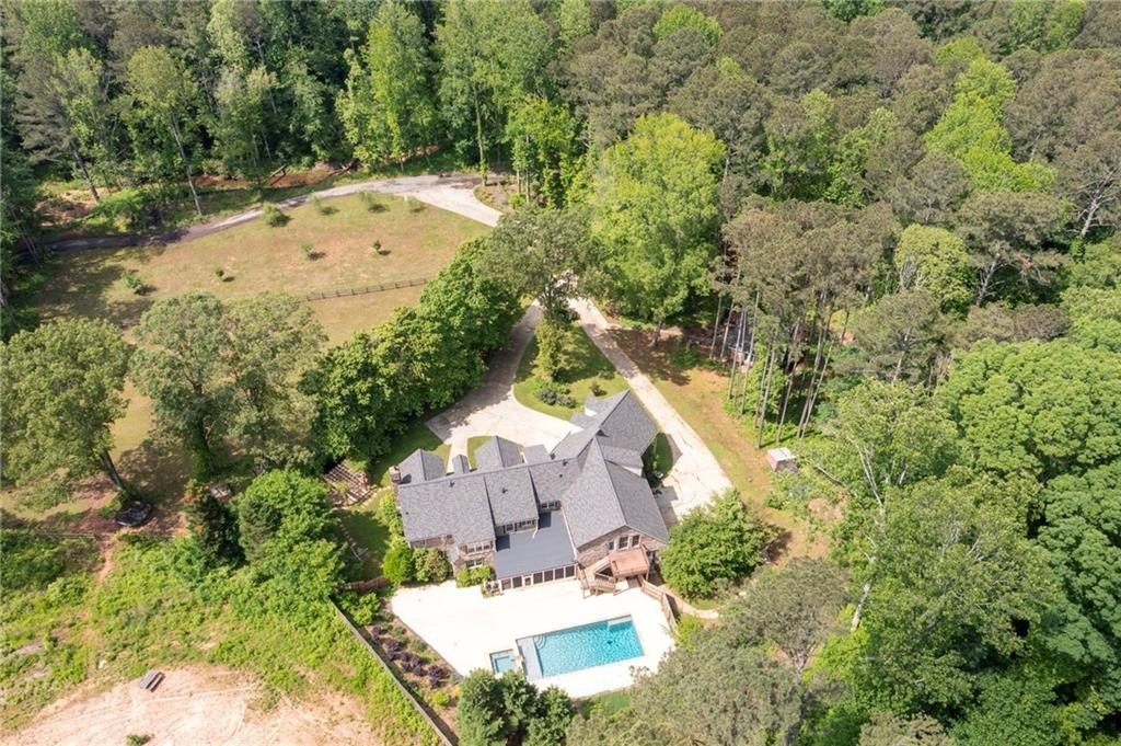 Motivated sellers are ready to make a deal! A peaceful retreat that feels worlds away that offers seclusion without sacrifice. Enjoy the best of both worlds with privacy and proximity in perfect harmony. Tucked away in a quiet neighborhood off a private road along Clark Creek, with nearly eight acres, is a custom built estate ready for you to call home. Upon entering, you are greeted with custom architectural designs, reclaimed wood beams, and freshly finished wood flooring. The main level features an open concept kitchen and dining area that flows into the living room and office space. A 1,000 square foot bonus area, perfect for in-laws, teens, guest quarters or even a banquet hall, is equipped with a second kitchen, full bath, access to the downstairs garage, and exterior entrance. Double staircases shine more of the home's unique attributes with reclaimed wood and customized iron designs. The second level boasts two primary suites. A bridge-like walkway provides access to the first primary suite, with sitting area, and bathroom with separate soaking tub and shower. The second primary suite was used as a gym, with floor-to-ceiling mirrors installed, tons of space for equipment/furniture, and balcony access to the pool. An oversized secondary bedroom with sitting area and ensuite is situated across from the upstairs loft that's flooded with natural light and fantastic property views. Two additional oversized bedrooms with ample closet space and access to a renovated hall bath round out the living spaces. The laundry room is conveniently located on the second floor, along with additional closet/storage space. The property is full of private amenities, including a rustic two-stall barn with new roof, fruit and nut orchard, peaceful pergola designed with swings and firepit, and gorgeous gunite pool with spa and sunning deck. Relax in the screened in patio, overlooking the pool area, year round. Additional exterior features include a batting cage, gagaball pit, expansive yard for playing and gardening, chicken coop and even a disc golf course. The main level garage is oversized and climate controlled, while the immense secondary lower-level garage can serve as a workshop, storage for boats, tractors, four wheelers. A brand new roof and garage doors were installed in December 2024. Two water heaters were installed in 2021, and four 3-ton HVAC units were installed in 2020. For additional access to Clark Creek Pass homeowners can consider rebuilding a bridge, that was removed in 2022, for access through Oak Pointe Estates. This property has potential for a bed and breakfast, retreat center, equestrian use and so much more. Positioned along Clark Creek, it is simply stunning in every season! The estate is ideally located within three miles of lake Allatoona, and is convenient to highways 75 and 575. Less than thirty miles from Atlanta to the south, and a short scenic drive to visit the North Georgia mountains; an estate of this size and quality is hard to find. Appraised in December for over 2M, this property offers instant equity and endless possibilities.