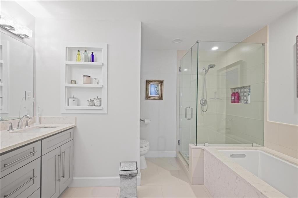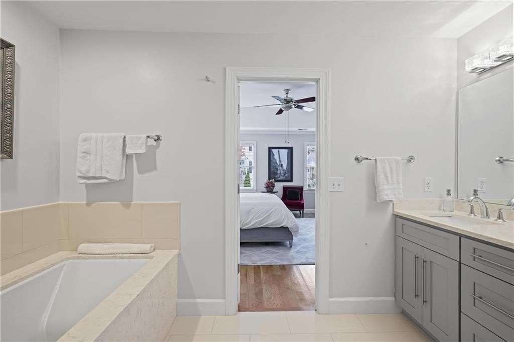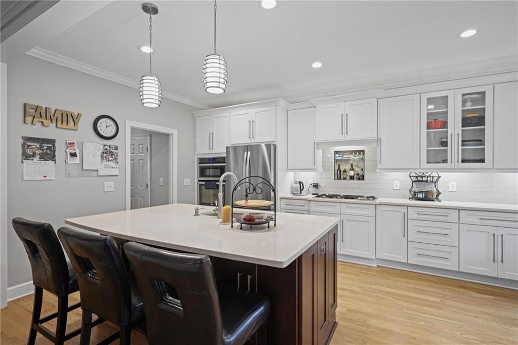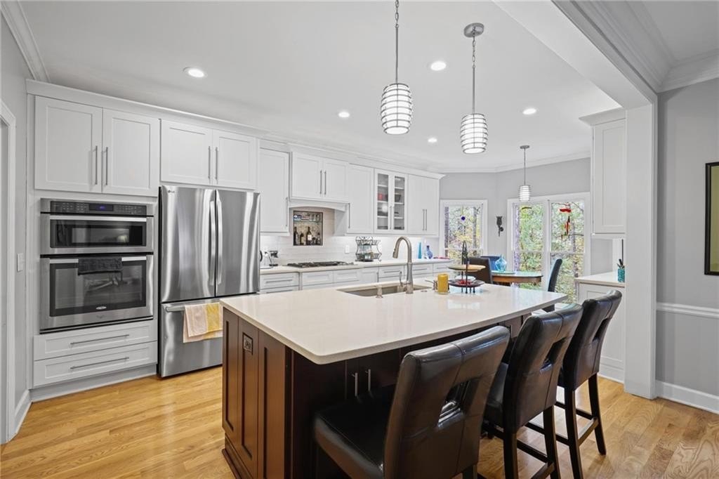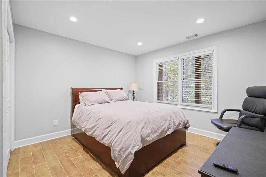 Welcome to this beautifully updated townhome, featuring high-end finishes and oak hardwood floors throughout! Step inside to a spacious living room with a cozy gas fireplace, perfect for relaxing or entertaining. The renovated open-concept kitchen boasts quartz countertops, custom-built cabinetry, and stainless steel appliances. Just off the kitchen, enjoy one of two private decks overlooking the peaceful Nature Preserve. The upper level has the primary suite, which offers a generous layout with a fully renovated bathroom, featuring a separate soaking tub and glass-enclosed shower. Two additional bedrooms share a modern full bath. The fully finished basement includes a large recreation room, additional bedroom, renovated full bath, and ample storage. From here, step out onto the second deck and enjoy the serene natural views. Move-in ready with quality finishes and thoughtful updates throughout. Conveniently located near the Chattahoochee River, parks, GA 400, Dunwoody and Roswell. A perfect blend of comfort, style, and location! Welcome Home!