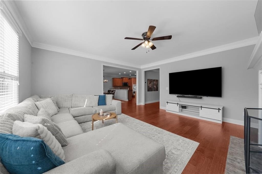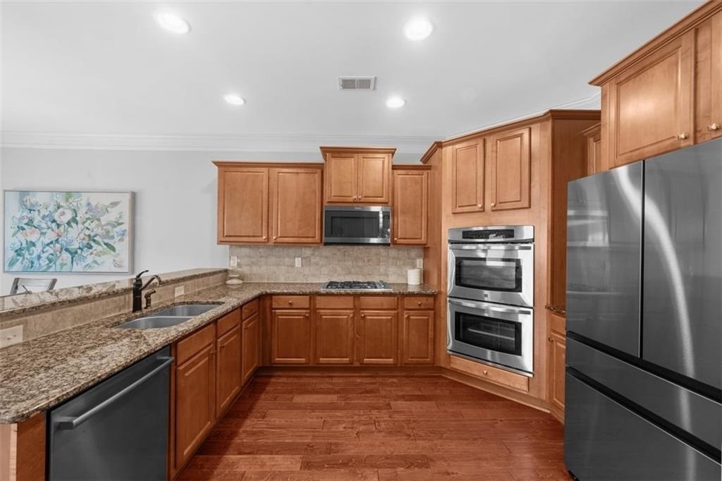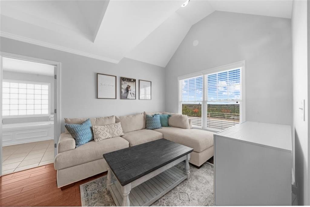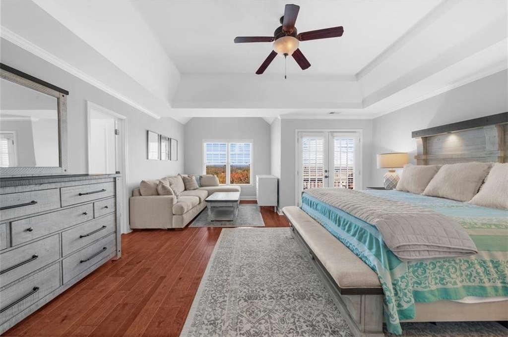 Introducing this gorgeous, MOVE IN READY Craftsman style home in a welcoming community in close-in Cumming. This pristine 4 bedroom, 4.5 bath home looks and feels like new construction, only better and is situated on a privacy fenced, cul-de-sac lot. Beyond the welcoming covered front porch, you'll find wonderful interior details on the main level including an open concept kitchen and family room, separate dining room, 9' ceilings and upgraded hardwoods. The wonderfully appointed kitchen has ample cabinet and counter space and features a butlers pantry area ideal for a wine or coffee bar and a generous pantry. You'll love the granite countertops, tile backsplash and stainless steel appliances including new refrigerator, a gas range, double ovens, dishwasher and microwave. The granite peninsula offers additional seating space and there is also a breakfast area open to the kitchen and family room with views of the backyard. The family room has a wall of windows overlooking the backyard and beautiful brick fireplace with large custom built-ins. The family room, kitchen and breakfast room all feature views of the perfect covered porch and fenced back yard. The back porch and extended patio area offer the perfect place to enjoy nature views and morning coffee as well as entertaining family and friends anytime. Upstairs you'll find four bedrooms and four full bathrooms. The primary suite features hardwood floors, high ceilings, sitting area and double french doors leading to a balcony with sweeping views of Lake Lanier and the mountains beyond. The ensuite has tile floors, double vanity with granite countertop, soaking tub, separate shower and a large walk-in closet. Three additional bedrooms are located on the upper level, all with hardwood floors and each with its own full bath. You'll appreciate the conveniently located laundry room which makes wrangling laundry practically care free! The attached two-car garage features easy entry into the mudroom/drop zone. This picture perfect, low maintenance home comes with front yard maintenance courtesy of the HOA and is conveniently located close to Highway 400, great schools, Lake Lanier, shopping, parks, trails and entertainment. Schedule your showing today!