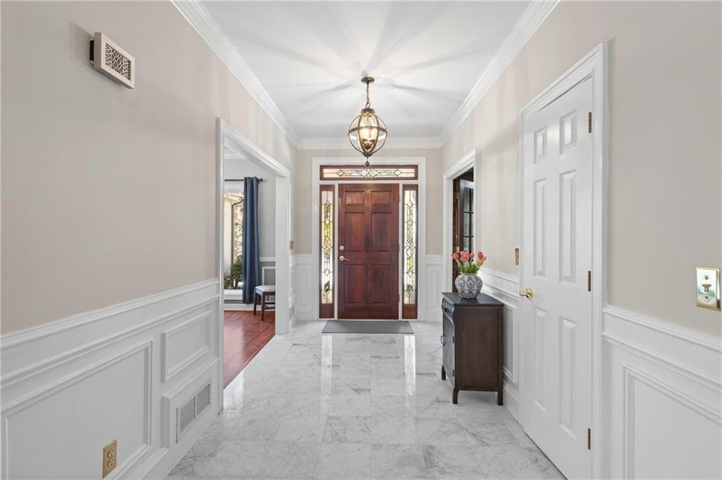 As you enter the front door, walk along the Marble Foyer into the Great Room and look up to the magnificent double tray ceiling. With this open concept home, you can see the beautiful Chef's Kitchen that was completely renovated in 2017. This kitchen includes a Breakfast Nook and Stained Cabinets to the ceiling. The Cabinets have features; such as, Spice Drawer, Bread Box, Sheet Trays, pull out Pantry shelves, and Quartz countertops, Double Oven, Gas Stovetop, Microwave, Wine Cooler, and brand new Dishwasher. The formal Dining Room can seat up to 12. Do you work from home occasionally, then have a seat in the Office with the stained wood paneling. Walk into the oversized Master Bedroom with sitting area to relax after a long day. The Master Bath was renovated in 2023 and includes an extra large Walk-in Shower and Walk-in Closet. Relax in the Den with all glass windows to view the backyard. This 3 Bd/ 4 Bath house has a large Bonus room above the Den that could be used as an extra bedroom. This home was built on a crawlspace, encapsulated in 2020 and brand new insulation in 2025. If you are concerned about Storage Space, then take a walk up the permanent staircase into the extremely large Attic space where you will find flooring and a Cedar Closet for storing seasonal clothes.