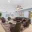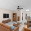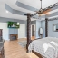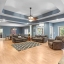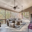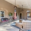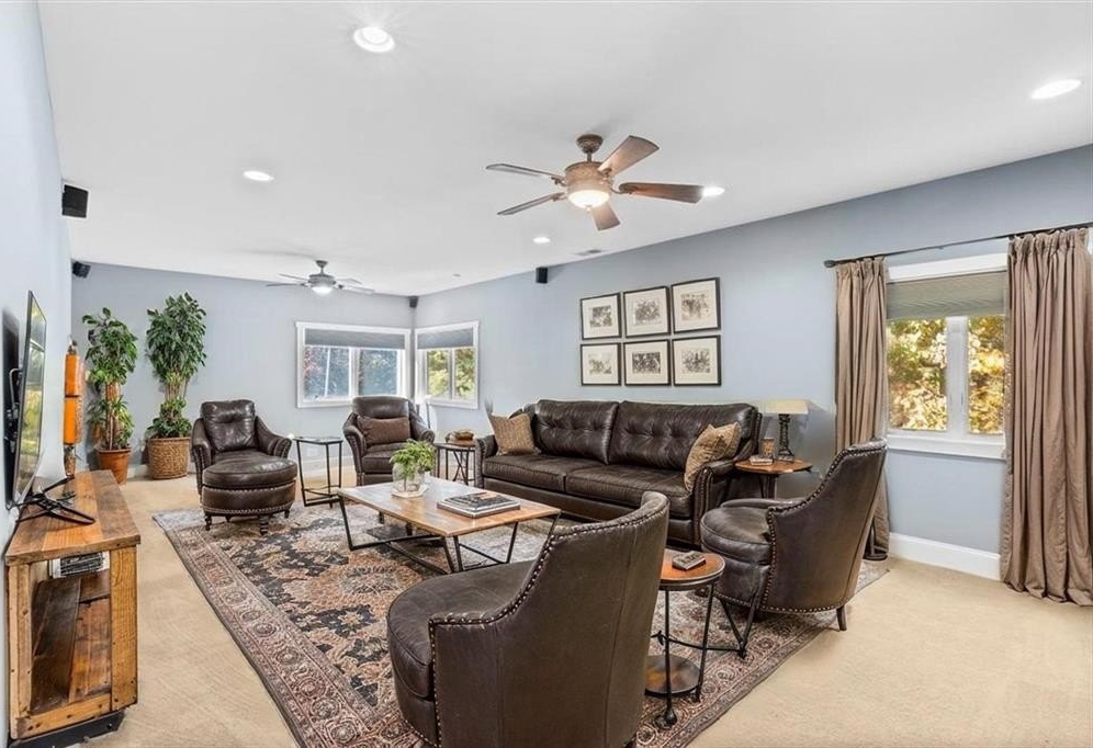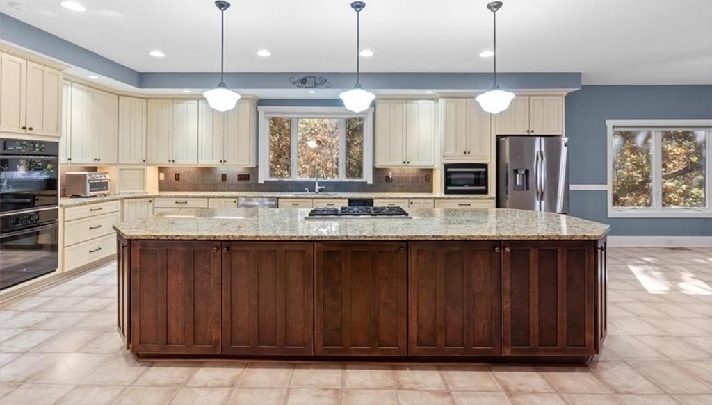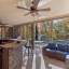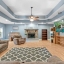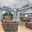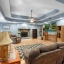 design, complemented by a stone gas fireplace and nine-foot vaulted
