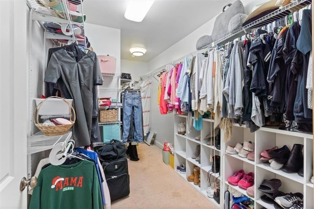 walk-in closets and an elegant primary bathroom featuring an oversized