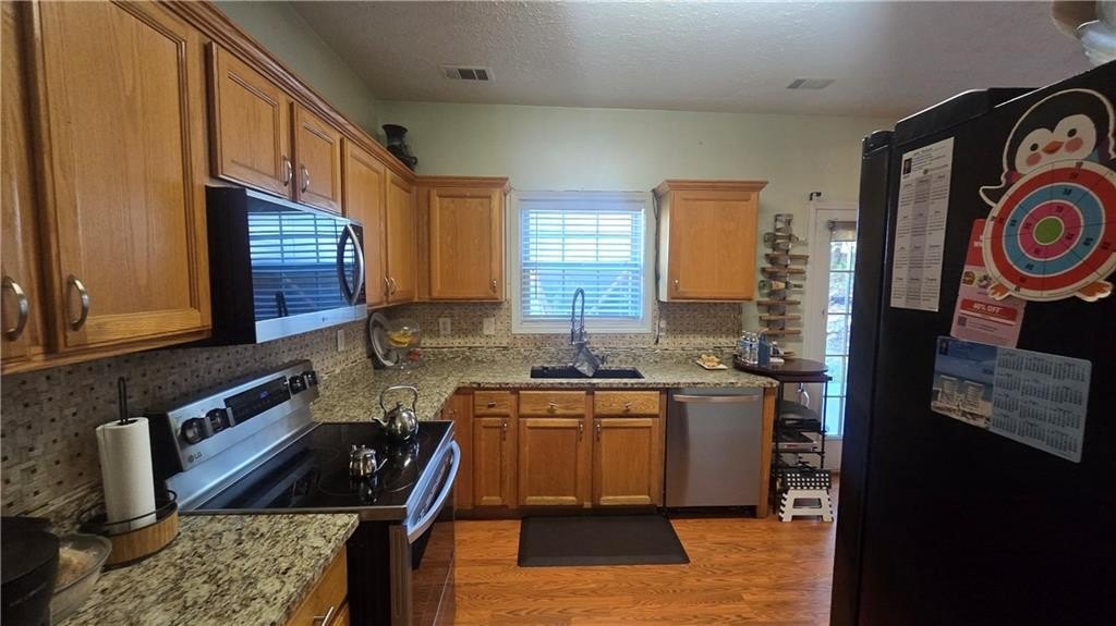 Enjoy outdoor living in the backyard with a spacious patio — perfect for grilling, gardening, or relaxing under the Georgia sun.