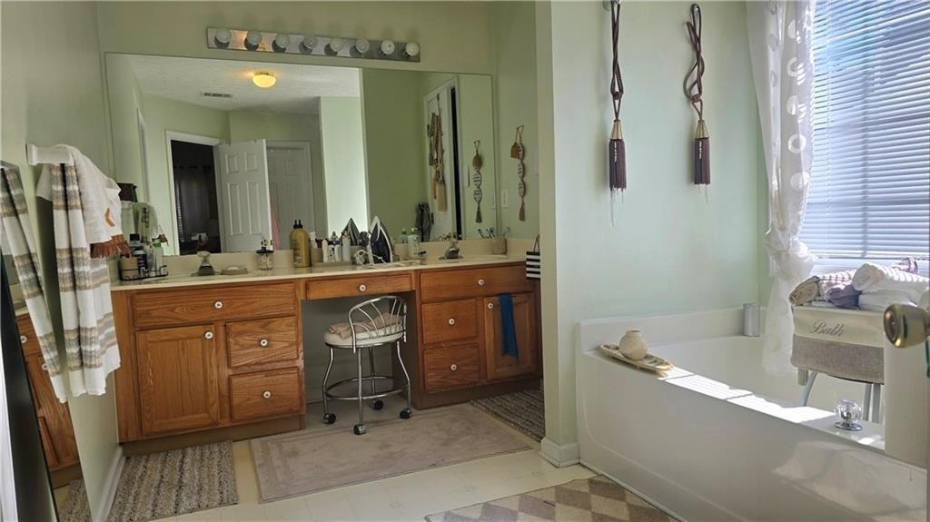 Upstairs, the expansive primary suite boasts a walk-in closet and a ensuite bathroom with dual vanities, soaking tub, and separate shower. Two additional bedrooms and a full bath complete the upper level, offering comfort and flexibility for family, guests, or a home office.
