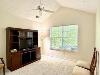 Welcome Home to 3734 Vineyards Lake Circle, The Vineyards Sought-After Community in Kennesaw! Discover easy living in this stunning, beautifully maintained patio home featuring a private setting, minutes from restaurants, shopping and schools, Bright open floor plan featuring a vaulted great room Open-concept living room, dining area, kitchen complete with white cabinetry, tile backsplash, and a pantry. Oversized Primary Bedroom features new carpet, vaulted ceilings and plantation shutters, Ensuite bath with double vanities, a walk-in shower, linen closet, and an spacious walk-in closet. Two secondary bedrooms offer plenty of space for guests, office or hobby room, a large full bathroom with a tub/shower combo. Spacious Sunroom, the perfect spot for relaxation year-round. A laundry room with built-in cabinetry provides extra storage, and the two-car garage includes more storage plus pull-down attic access. Improvements and Updating include: New LVP flooring, fresh paint throughout, new carpet in Bedrooms, Plantation shutters, Arlo security doorbell, new exterior door for Sunroom, new bathroom faucets, lighting and hardware, dining room chandelier, HVAC 3 years old, water heater 4 yrs old, Refrigerator 2 years, washer and dryer to stay with the home. very well maintained interior and exterior. Amenities features: a clubhouse, fitness center, swimming pool, and scenic pond views with water features.