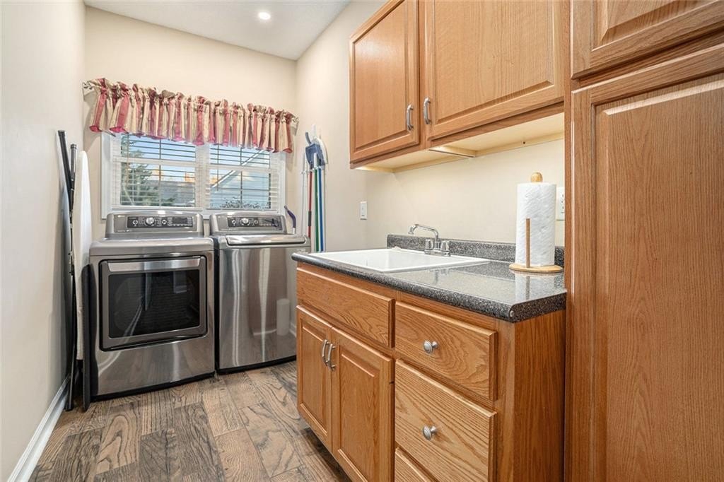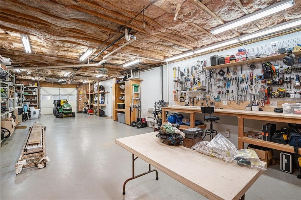 Outside discover your personal oasis — a spacious, flat backyard complete with a tranquil Koi pond, surrounded by peace, privacy and possibility. Additional garage and workroom, perfectly situated for all the home projects, storing tools, etc.. DIY paradise!