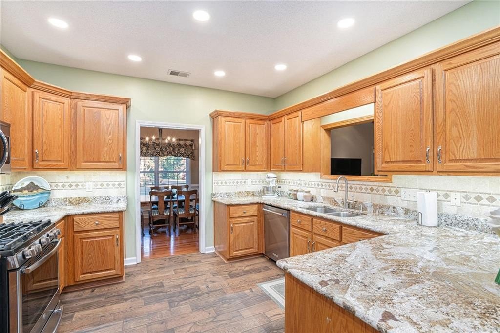 Nestled in the peaceful Home Place community, this 4-bedroom, 4-bath brick traditional ranch on a basement offers over 3,600 square feet of beautifully designed living space - blending timeless charm with thoughtful upgrades and room to grow. Step into a soaring two-story foyer that opens to light-filled living spaces with engineered hardwood floors throughout the main level. The chef’s kitchen features generous counter space, under cabinet lighting, a countertop peninsula and a breakfast nook that overlooks the backyard. Seamlessly connecting to both the great room and the primary suite via an expansive deck that’s perfect for morning coffee, evening cocktails, bird watching and weekend gatherings.