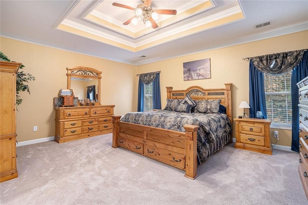 The main-level owner’s suite is a private retreat with trey ceiling, spa-style bath w/jetted tub and dual shower heads, and direct access to the deck. Consider it your own sanctuary, just steps from the heart of the home. 3 spacious secondary bedrooms are also on the main level, offering flexibility for family, guests or working from home. An unfinished bonus room and bath above the garage present endless potential for expansion: think guest suite, home office or creative studio. The finished terrace level adds even more versatility with a large recreation area, patio access, full bath and a flex room ideal as a 5th bedroom, gym or media lounge.