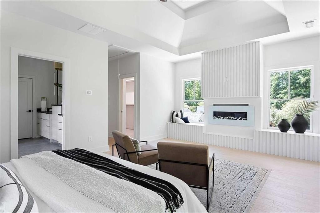Embark on a journey of modern elegance with this gorgeous 4-bedroom, 4-bathroom sanctuary, set upon an expansive .40 acre lot in the vibrant heart of East Lake. Designed with a seamless blend of contemporary flair and timeless sophistication, this home boasts an expansive layout accentuated by soaring 10ft+ ceilings and exquisite wide-plank flooring. The living room serves as the focal point, showcasing a sleek custom built-in wall with ample shelving space and a striking porcelain tile fireplace, inviting both warmth and engaging conversations. Retreat outdoors to the covered front porch, offering a serene space to relax and soak in the neighborhood ambiance. Adjacent to the living area, a formal seating and dining space awaits, adorned with a stunning Natural Large CF Woven Chandelier, perfect for hosting gatherings and entertaining guests. The kitchen features a generously sized island adorned with luxurious quartz countertops, porcelain tile backsplash, and high-end Z-line appliances. A dedicated bar area adds a touch of sophistication, ideal for evening cocktails and intimate gatherings. The lower level presents a versatile bedroom and full bathroom, ideal for a home office or guest suite. Upstairs, discover a private retreat in each bedroom, with all second-level bedrooms boasting full ensuite bathrooms. The master suite exudes tranquility, boasting custom built-in bench seating surrounding a captivating centerpiece fireplace and a spacious walk-in closet. Step onto the primary suite balcony to overlook the backyard and start your day on a serene note. The primary bathroom offers a spa-like ambiance with dual floating vanities, built-in LED lighting, and abundant cabinet storage. Indulge in relaxation with a soaking tub and separate oversized rainfall shower. Outside, the expansive lot beckons endless possibilities, with an oversized 2-car garage providing additional storage. Whether envisioning verdant landscapes, an outdoor entertainment haven, or even a future pool or ADU, each possibility contributes to crafting your personal oasis in this East Lake residence. Conveniently located just minutes from Oakhurst Village, the shops and restaurants of Kirkwood, and downtown Decatur, this home offers unparalleled access to the vibrant Atlanta scene. Welcome home to luxurious living at its finest.