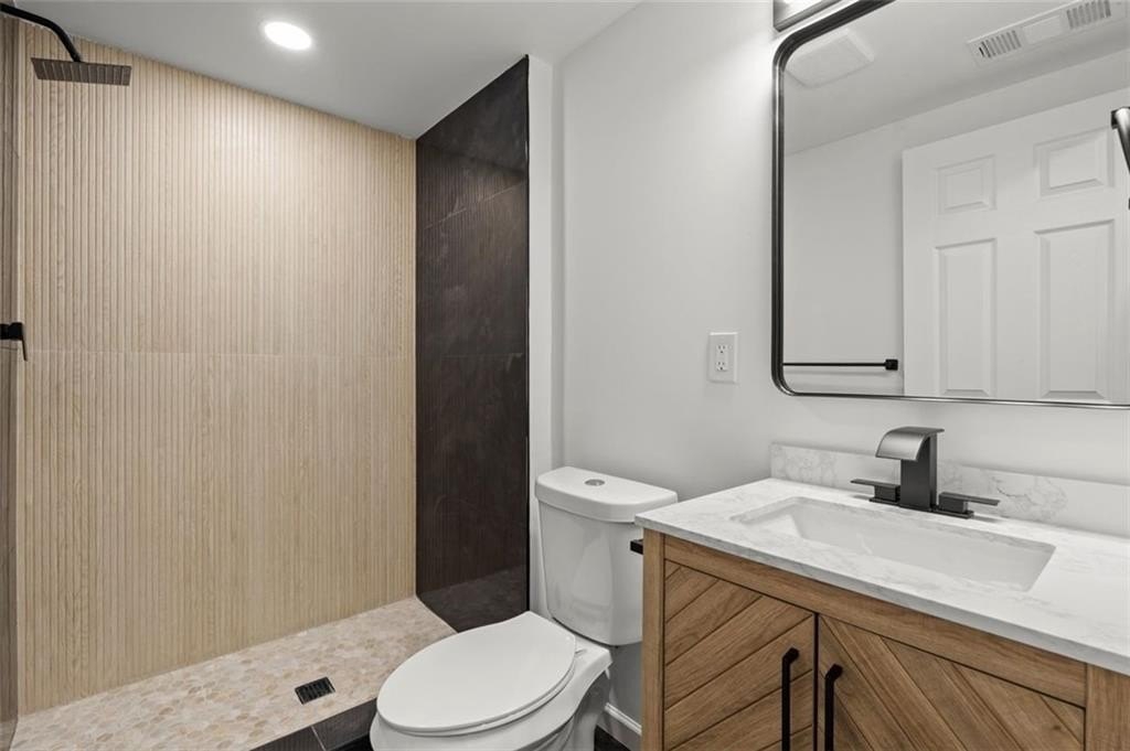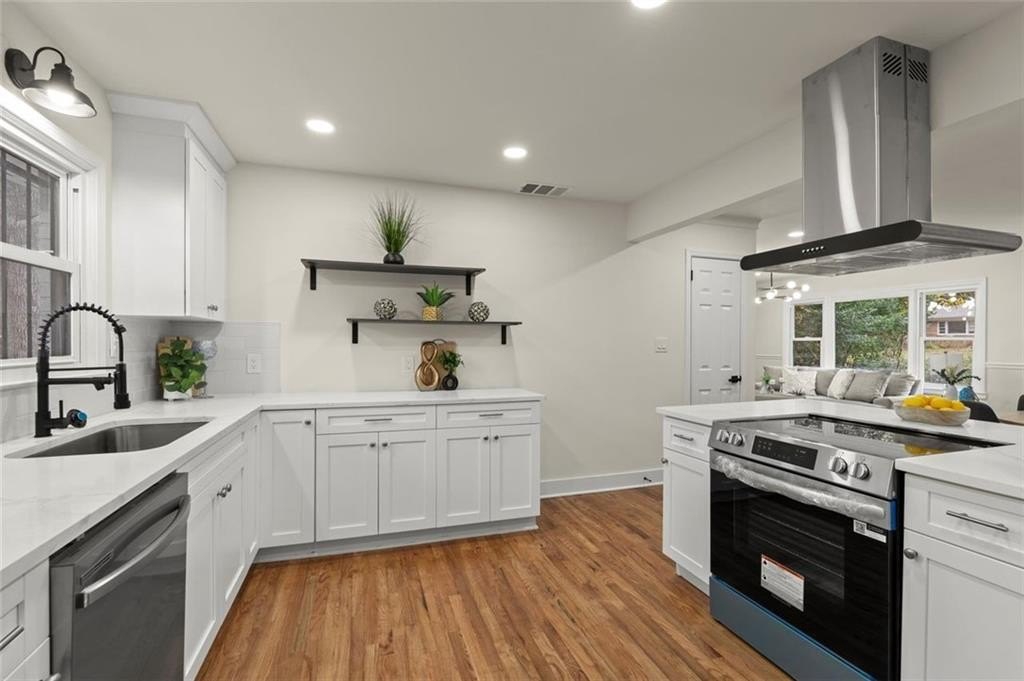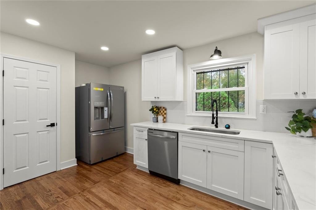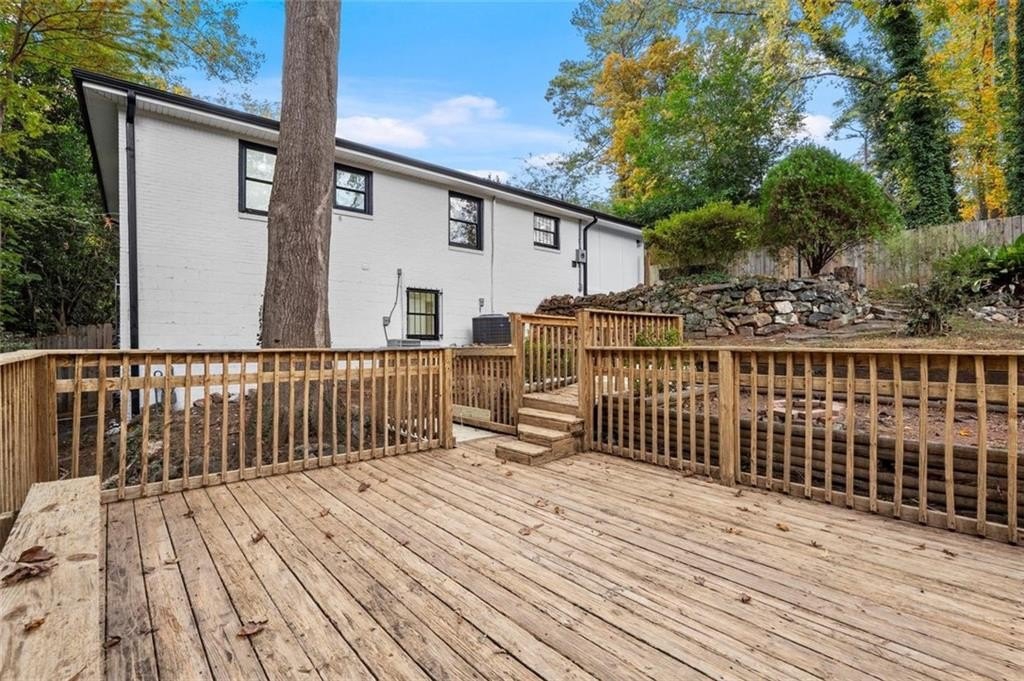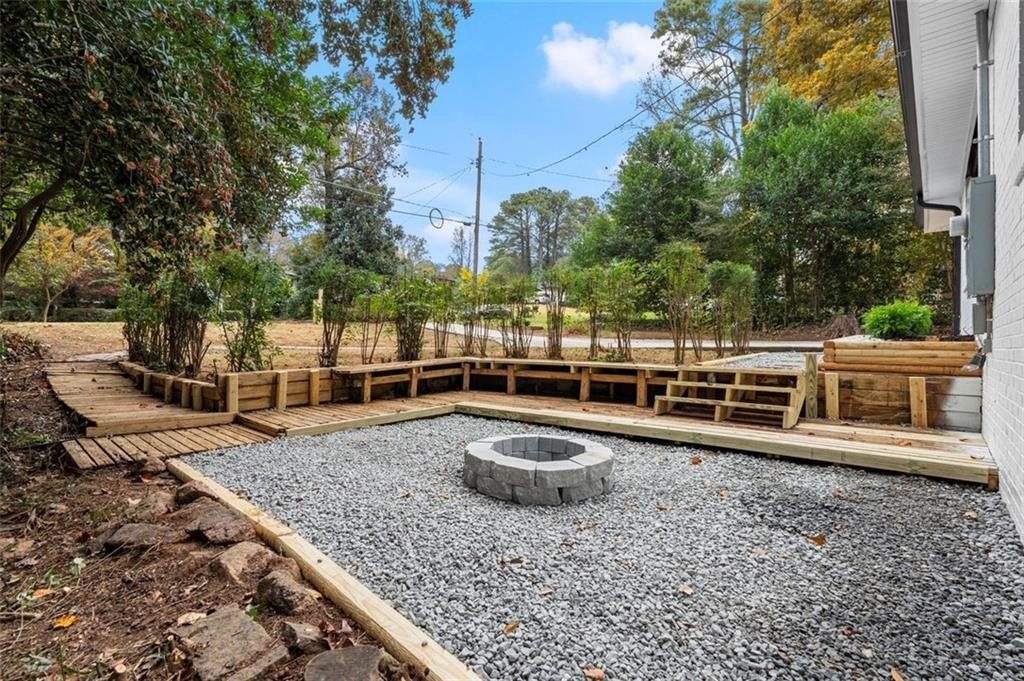 Completely remodeled ranch featuring 3 bedrooms and 2.5 bathrooms, including a finished basement! This spacious home boasts an open-concept layout and a modern kitchen with white cabinets, quartz countertops, and an island extended for seating. Step outside to enjoy a cozy fire pit in the front yard or relax on the double deck overlooking a large backyard ready for your personal touch. Ideally located just 10 minutes from Downtown Decatur and 20 minutes from Downtown Atlanta, this move-in-ready home perfectly blends comfort, style, and convenience.
