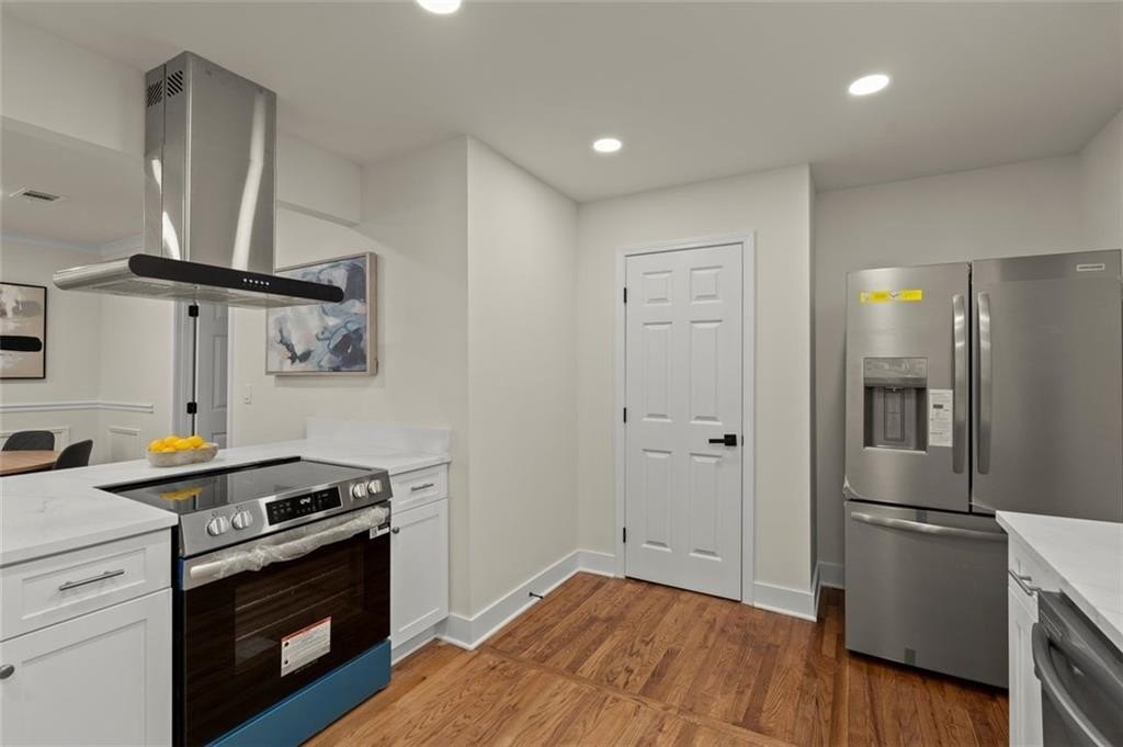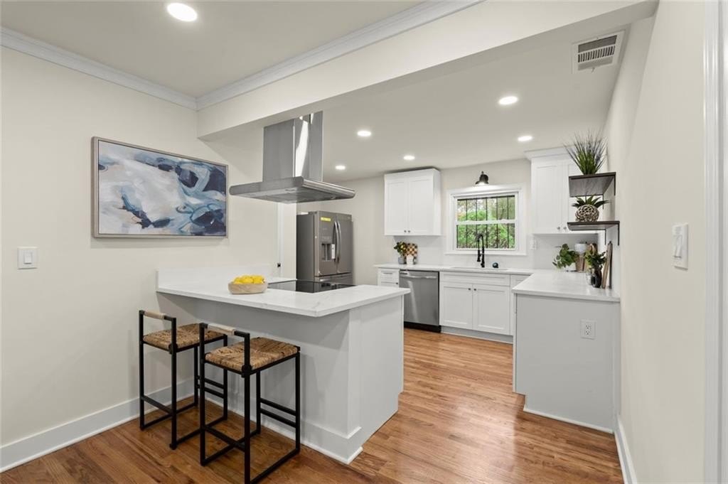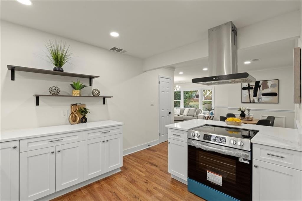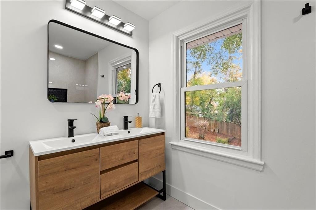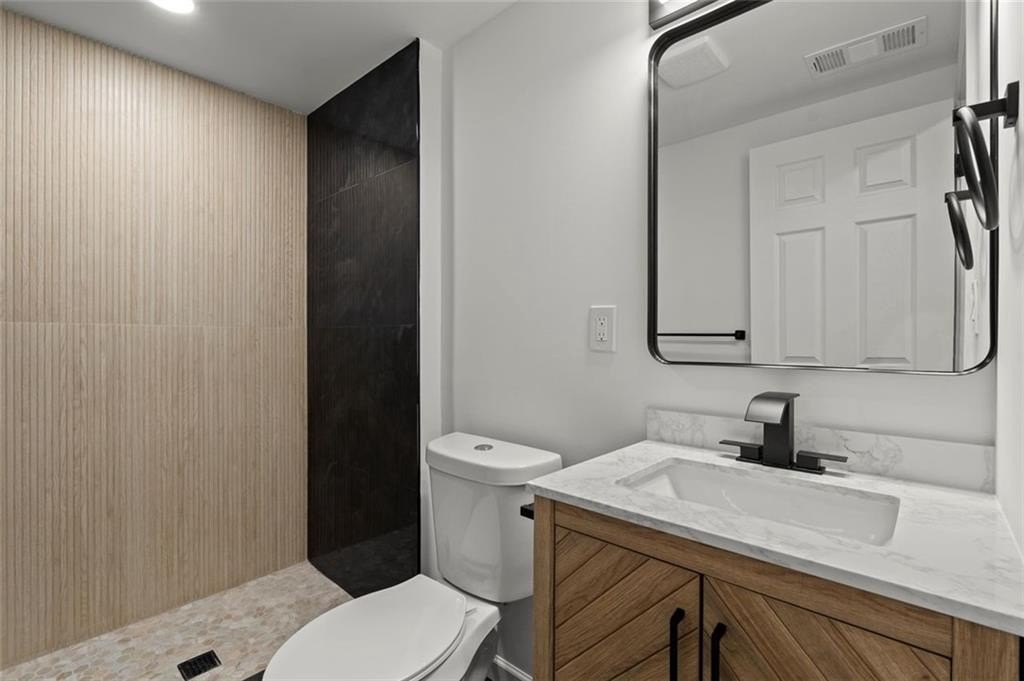 Completely remodeled ranch featuring 3 bedrooms and 2.5 bathrooms, including a finished basement! This spacious home boasts an open-concept layout and a modern kitchen with white cabinets, quartz countertops, and an island extended for seating. Step outside to enjoy a cozy fire pit in the front yard or relax on the double deck overlooking a large backyard ready for your personal touch. Ideally located just 10 minutes from Downtown Decatur and 20 minutes from Downtown Atlanta, this move-in-ready home perfectly blends comfort, style, and convenience.