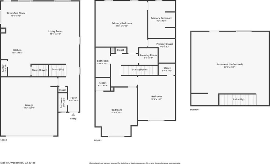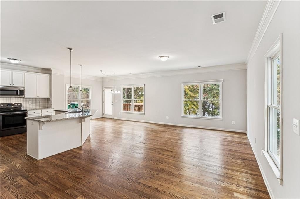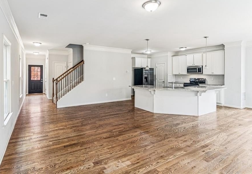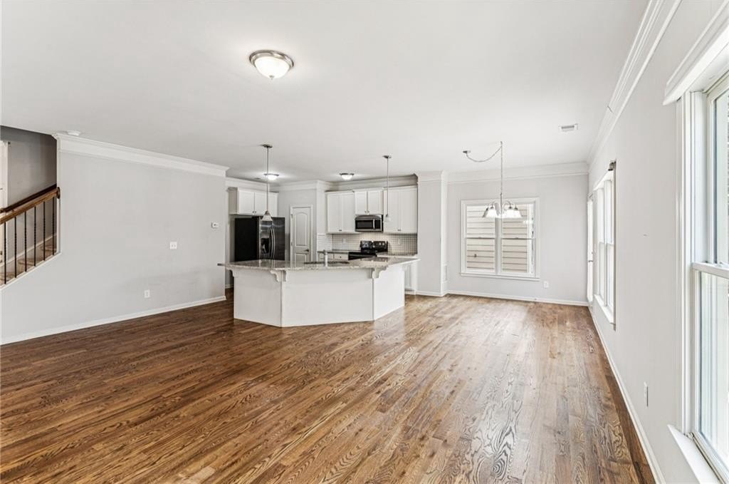 Welcome home to this beautiful 3-bedroom, 2.5 bathroom BASEMENT home in the desirable Woodstock Village community. This nearly-new residence offers contemporary design and move-in-ready convenience.This open concept floor plan features beautiful hardwood floors on the first level, granite countertops, crown molding and stainless steel appliances. The home features 3 large bedrooms all with generous walk-in closets providing abundant storage, a large primary bathroom with double vanity and relaxing soaking tub and an Unfinished basement offering excellent potential for extra entertainment space. .
