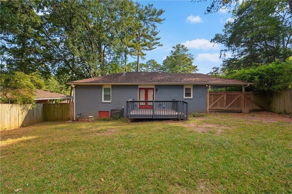 Welcome to this charming 2-bedroom, 1-bath home, perfect for pet owners or families with small children. The fully fenced yard offers privacy and security, while the covered carport provides convenient access to the kitchen. Inside, you'll find a custom kitchen featuring granite countertops, a breakfast bar, pantry, and a designer backsplash. New stainless steel appliances, including a refrigerator, washer, and dryer, make this kitchen both stylish and functional. The home boasts beautiful hardwood floors throughout, complemented by designer tile in the bathroom. Thoughtful touches like designer colors, lighting, and finishes enhance every room. Recent upgrades include a new roof, new cabinets, and a new vanity in the bathroom. This home’s fantastic finishes are a rare find in a rental property. Don't miss out on this charming gem!