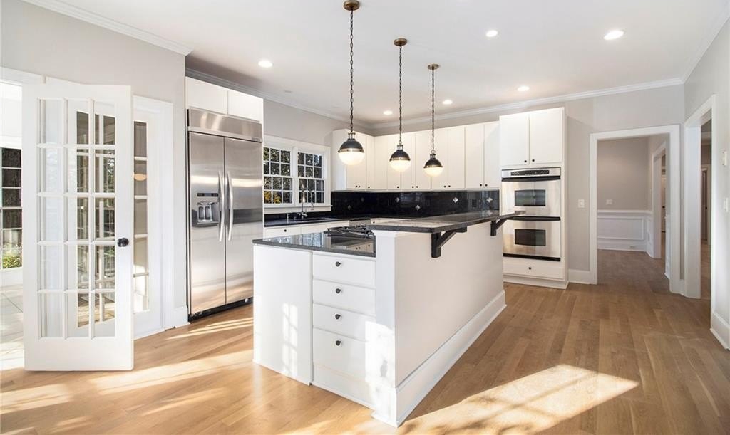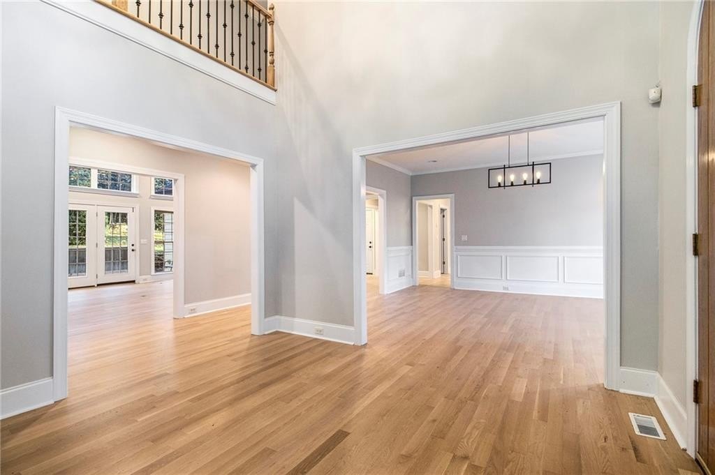 Experience refined luxury on a quiet North Buckhead/Sandy Springs cul-de-sac. Set on over an acre in the highly sought-after Riverwood International Charter district, this executive residence lives like a private estate—grand in scale yet designed for everyday comfort. A dramatic vaulted living room with a fireplace and a wall of windows introduces the home with elegance and abundant natural light. The flow continues into a formal dining room and a gourmet kitchen featuring rich wood cabinetry, high-end stainless steel appliances, granite countertops, and a generous eat-in area. Ten-plus-foot ceilings and gleaming hardwood floors enhance the sense of sophistication throughout.