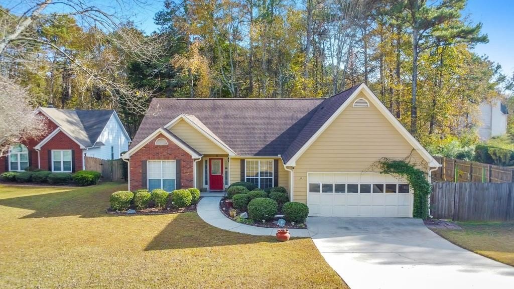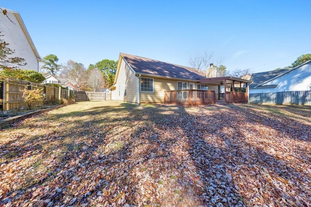 Welcome home to this charming 3 bedroom, 2 bathroom ranch nestled in the desirable Ashley Crossing community of Lawrenceville. Situated on a private cul-de-sac lot just shy of half an acre, this home offers a peaceful setting with plenty of space to relax and entertain. Step inside to a bright and airy floor plan featuring a separate dining room that flows seamlessly into the fireside family room, complete with vaulted ceilings and abundant natural light. The kitchen offers a sunny breakfast room, white cabinetry, a pantry, and ample counter and cabinet space—perfect for everyday cooking and gathering. The main-level primary suite is a true retreat with vaulted ceilings, dual walk-in closets, and an ensuite bathroom featuring double vanities, a separate shower, and a soaking tub. Two generously sized secondary bedrooms share a well-appointed hall bathroom. Enjoy outdoor living on the spacious deck, offering both covered and uncovered areas that overlook the expansive fenced-in backyard with a cozy firepit area—ideal for hosting friends and family year-round. An attached 2-car garage provides added convenience. Located in a prime Lawrenceville location within the sought-after Peachtree Ridge High School district, you’ll enjoy easy access to I-85 as well as an abundance of nearby shopping and dining options. This home truly combines comfort, convenience, and charm!