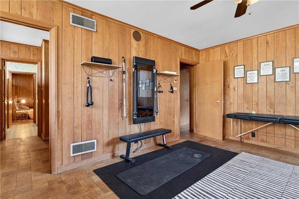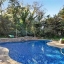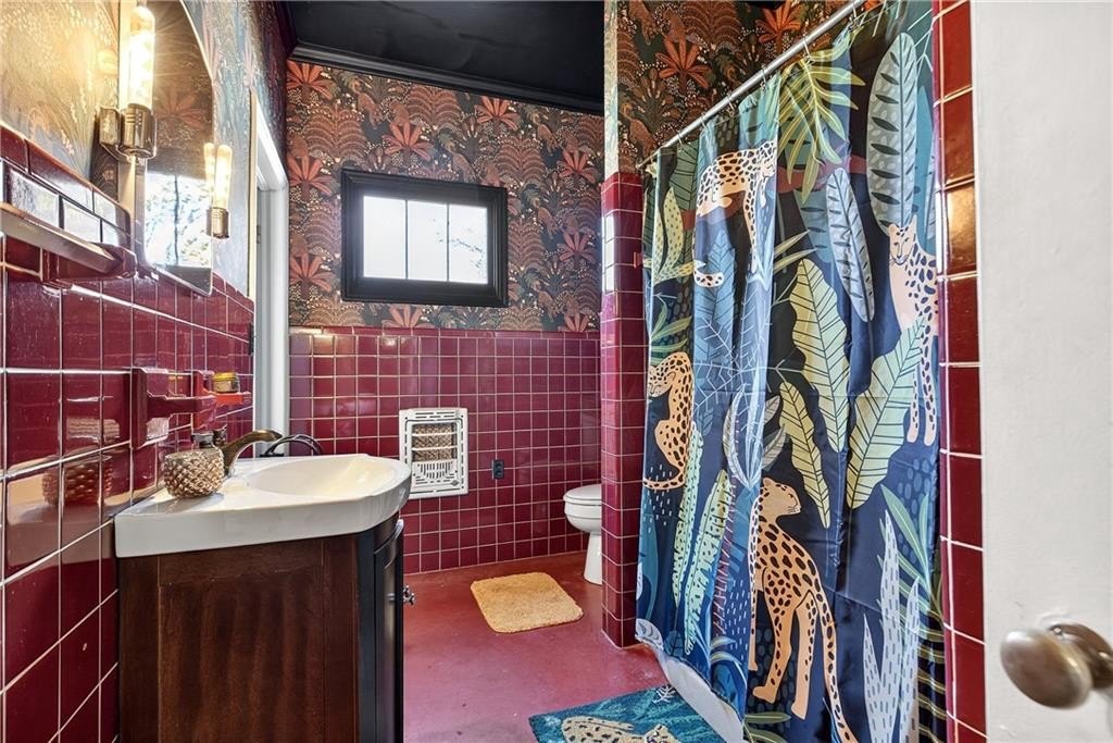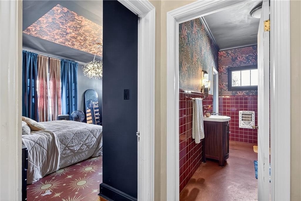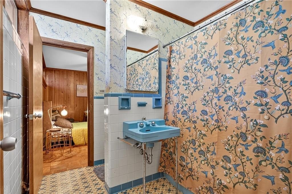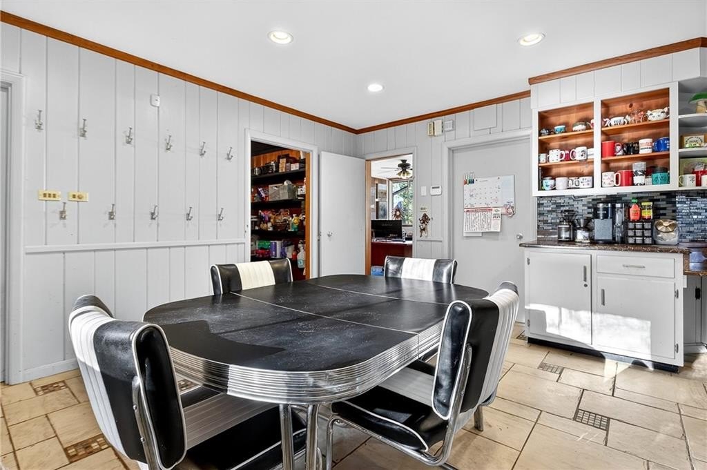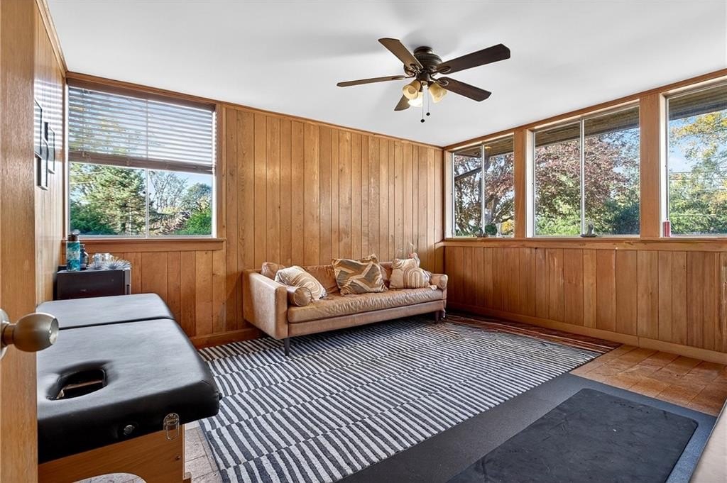 A rare architectural masterpiece on 1.5 private acres, this mid-century ranch was designed by renowned architect Gerald L. Bilbro and inspired by Frank Lloyd Wright's organic modernism. Offering 4,365 sq. ft., the home features 5 bedrooms, 4 full baths, solid wood paneling, expansive windows, sliding doors, and a dramatic vaulted living room with a huge stone fireplace and hand-quarried Tennessee facade. The flowing layout includes tile, concrete, and hardwood flooring, custom built-ins, and an indoor tiki bar perfect for entertaining. Just off the main living areas, an expansive open-air patio offers built-in stone seating that wraps the entire space, creating a natural gathering spot shaded by surrounding mature trees. The resort-style 38,000-gallon pool (with new liner), dual waterfalls, and adjoining hot tub provide additional outdoor enjoyment. A detached garage, generous circular driveway, and wide open yard areas add convenience and flexibility. This one-of-a-kind Hampton estate blends iconic MCM design, warmth, and exceptional outdoor living.