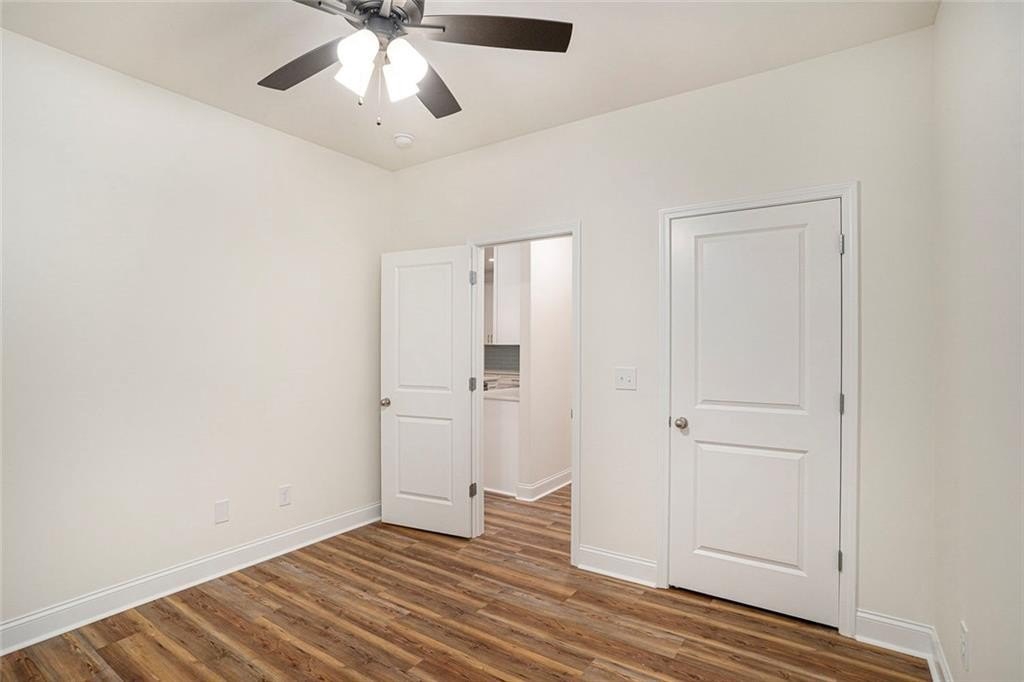 The main level features an inviting open-concept layout perfect for entertaining. A spacious dining area flows seamlessly into the great room, highlighted by an elegant electric fireplace and abundant natural light. The gourmet kitchen is a true showstopper with white soft-close cabinets and drawers, quartz countertops, a subway tile backsplash, stainless steel appliances, and a walk-in pantry. Enjoy casual dining in the sunny breakfast nook overlooking the private, tree-lined backyard, or step outside to relax on the covered rear porch. Also on the main level is a bedroom and full bath that provide flexibility for a home office or guests.