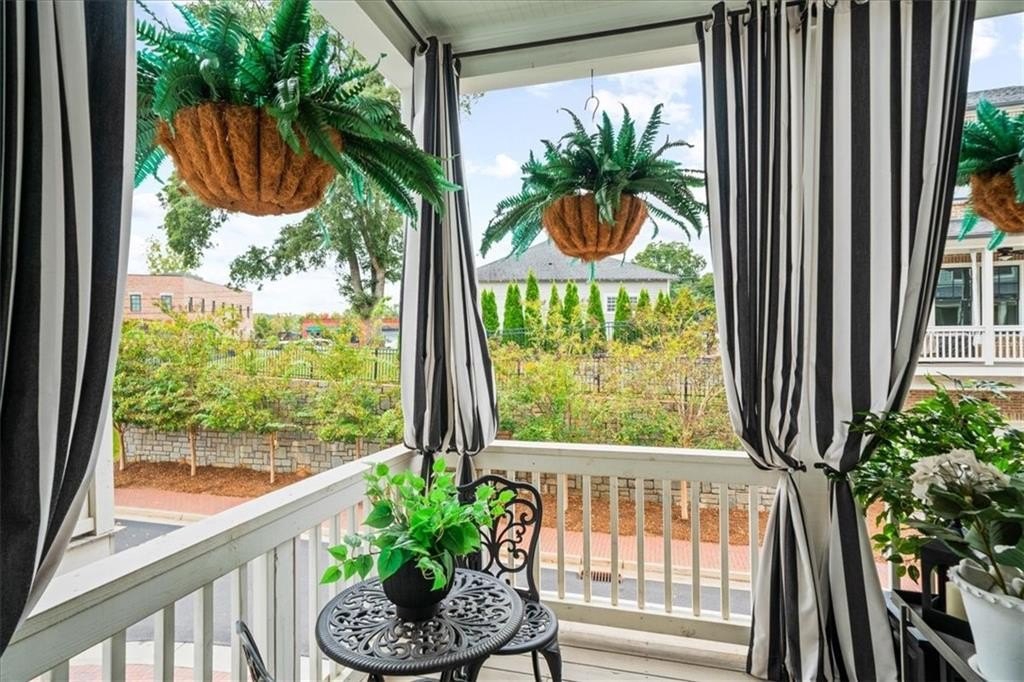 If location and better than new tops your list, Canopy is as good as it gets — a boutique community perfectly tucked between Roswell Mill, Canton Street, and the Chattahoochee River. Surrounded by parks, trails, and local hotspots, this model home stands out with double front porches, designer finishes, and luxury upgrades throughout. Step through the double front doors into a light-filled open plan with hardwood floors, custom lighting, and so many upgrades throughout. The gourmet kitchen boasts quartz countertops, abundant cabinetry, and top-tier stainless appliances, flowing seamlessly into the spacious dining and living areas with fireplace and shiplap accents. Enjoy indoor-outdoor living at its best with a front balcony overlooking the community and a covered back deck with privacy curtains. The corner office with windows—an inspiring work-from-home retreat. Upstairs, the primary suite features a large walk-in closet and a spa-inspired bath with double vanities and an oversized shower. Two generous secondary bedrooms provide comfortable space for guests.
