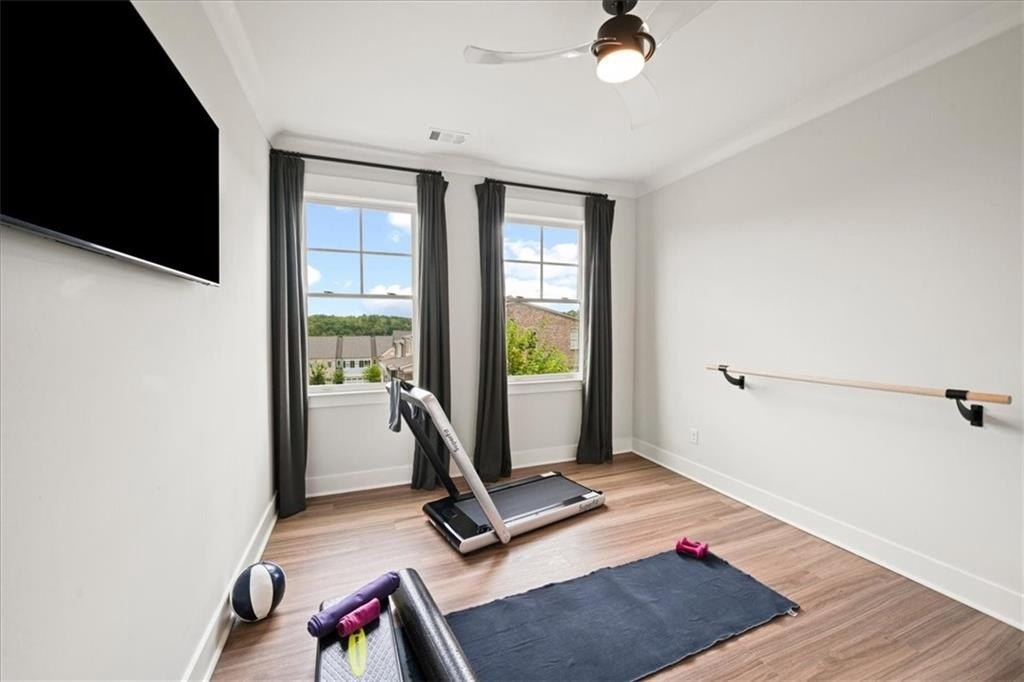The terrace level is bright and inviting, finished to the same high standards as the main level and complete with a full bath—perfect for a media room, gym, or guest suite. Community perks include a dog park and an overlook park with river views. From here, you can walk to Gate City Brewing, Mac McGee’s, and all the charm of Historic Downtown Roswell. Experience upscale living with a lock-and-leave ease, where every detail blends comfort, convenience, and style.