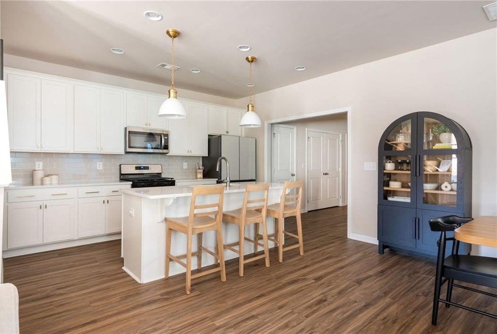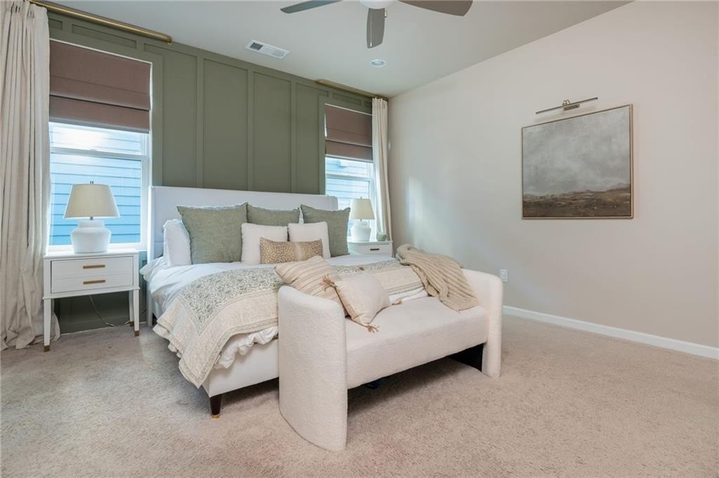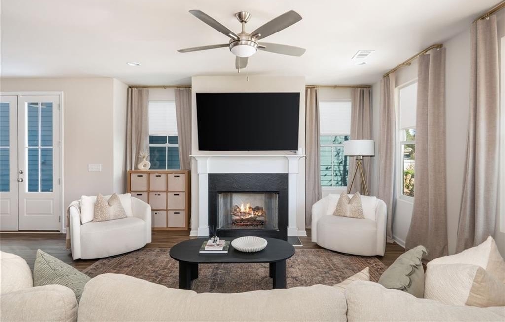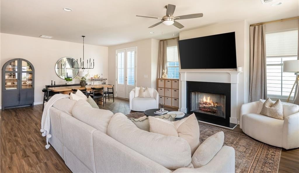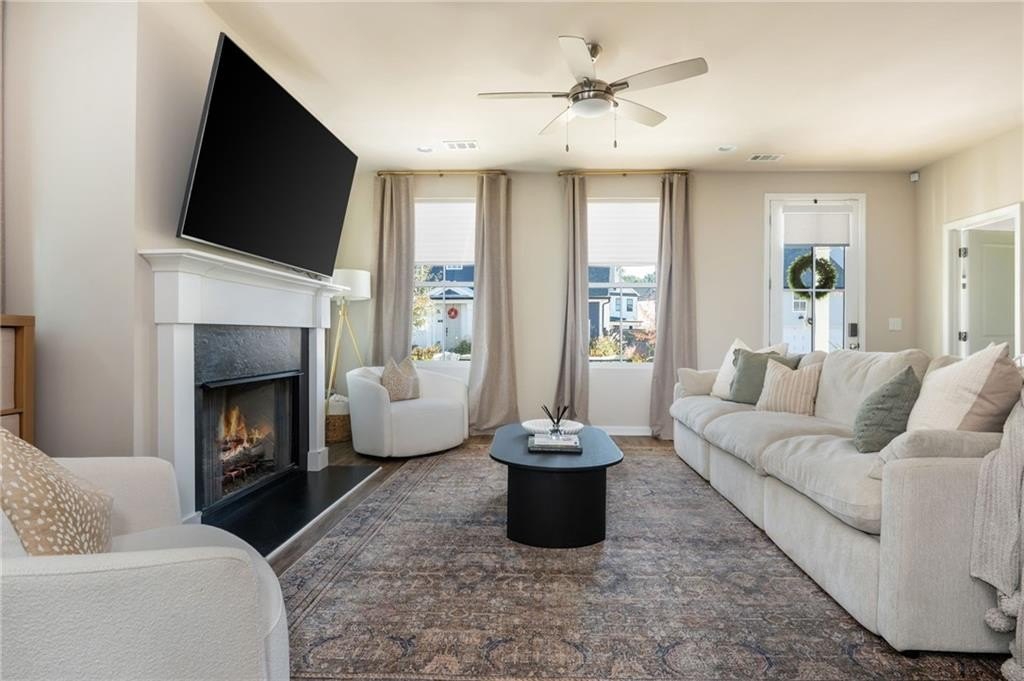 Welcome to 51 Little Magnolia Lane, a beautifully upgraded 4-bedroom home nestled in the picturesque and one-of-a-kind community of Harmony. This rare "Bradford" floor plan is the only of it's kind available in the community and offers the ultimate in comfort and convenience with a primary suite on the main level, a cozy upstairs loft, and three additional generously sized bedrooms perfect for guests or an at-home office. Step inside from the inviting covered front porch to an open-concept layout featuring a bright and airy living room, dining room, and kitchen-perfect for both everyday living and entertaining. The living room is bathed in natural light through large windows, and the cozy gas log fireplace adds a touch of warmth and ambiance. Gorgeous luxury vinyl plank flooring flows throughout the main floor. The chef-inspired kitchen boasts white cabinetry, upgraded light fixtures, a large island, sleek Quartz countertops, and a spacious pantry. The expansive primary suite is a true retreat, featuring a custom accent wall, large windows, a walk-in closet, and en suite bathroom with dual vanities and a beautifully tiled shower. Upstairs, you'll find a cozy loft area perfect for relaxing or reading, along with three additional large bedrooms (perfect for a home office!) and a full bathroom with dual vanities and a tub/shower combo. This home is designed with convenience in mind, featuring two laundry closets-one on each level. Outdoors, you'll enjoy a private, fully fenced courtyard-ideal for al fresco dining, entertaining, or simply enjoying the fresh air. The welcoming covered front porch offers the perfect spot for sipping your morning coffee or unwinding in the evening. Additional highlights include a 2-car rear-entry attached garage, main floor half bathroom, upgraded hardwoods on the stairs, luxury vinyl plank flooring upstairs, and energy-efficient windows, doors, and insulation, ensuring comfort year-round. Situated in the thoughtfully designed Harmony community, this home is just steps from the community pavilion, lush green spaces, trails, a garden, and even an apiary-all built around the charming city hall. Designed by the renowned Lew Oliver, Harmony offers a unique atmosphere that blends charming homes and thoughtful details with the beauty of nature. This upgraded home is better than new! Schedule your private showing today and experience the exceptional lifestyle Harmony has to offer.