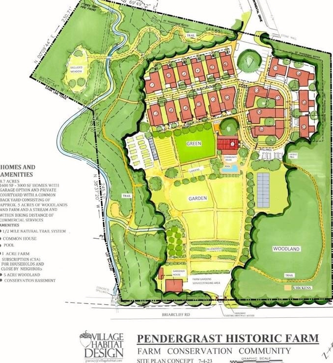 This is no ordinary neighborhood. Only twenty of us stand together, rooted around the farm like a small forest of homes, each crafted to honor the land rather than replace it. Behind me, protected woods rise and fall in soft waves. Trails twist under cathedral canopies. A stream murmurs its endless song. I hear it all—the footfalls of early-morning walkers, the laughter drifting from the saltwater lap pool, the quiet exhale of someone finding peace on their screened porch.