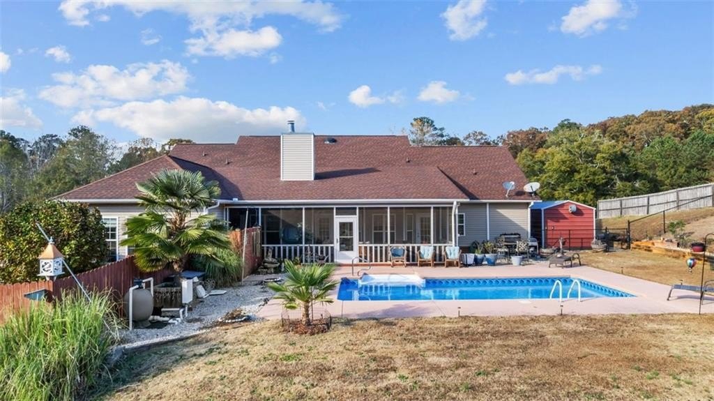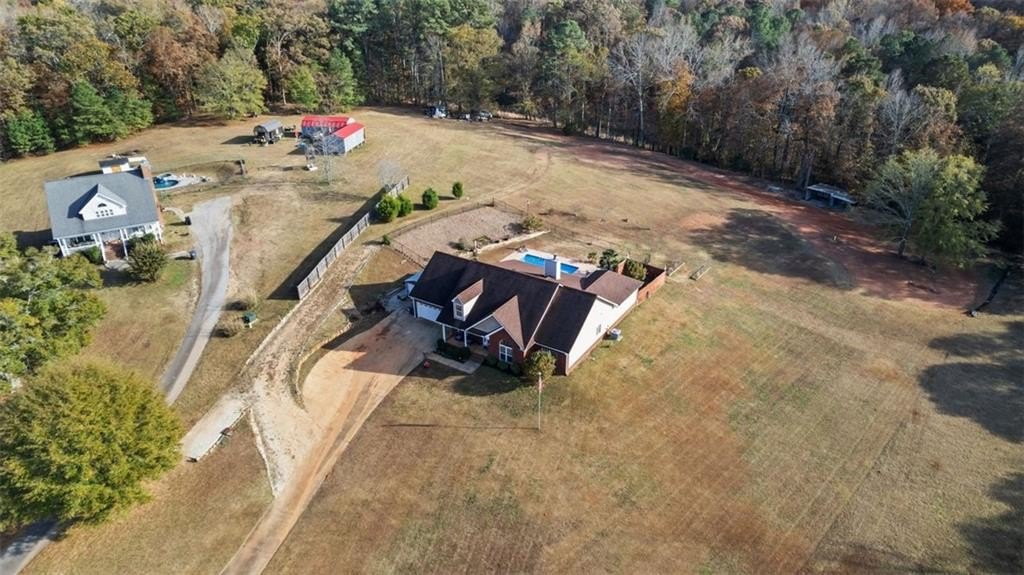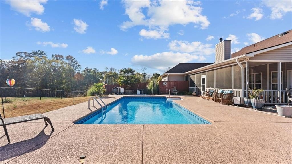 This Home checks all the boxes! Sitting on 3 Acres this home offers with open lawn space, your own in ground pool, fenced in yard, screened in porch, and all the room you need to grow. Step inside with high ceilings, Large Living Room, Dining Room, Eat in Kitchen. All bedrooms on main level with Large bonus room with full bath upstairs. Private Primary suite with spa like bathroom, large walk in closet, separate tub and shower and private access to the porch! Tucked away for peace and privacy, yet close to major roads, shopping, dining, and recreation. This 3 acre estate offers flexibility to match your lifestyle!