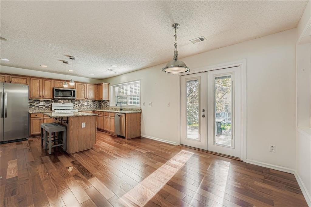 Welcome to this beautiful, well-maintained, move-in ready home in sought after Chastain Glen subdivision! You'll be warmly welcomed by the grand foyer, and gleaming cherry hardwood floors, leading into the two-story great room that offers a cozy fireplace, and an amazing view to the level backyard made for relaxing or entertaining! Mealtime will be a treat in the separate dining room or eat-in kitchen, featuring granite countertops, tile backsplash, an oversized island and walk-in pantry. Upstairs you'll find all 3 bedrooms and separate laundry. The primary bedroom features a freshly renovated primary bath with dual vanity, garden tub, and a separate shower with subway tile and a custom glass door. Great community with swim/tennis and a playground. Easy interstate access, near grocery, shopping, restaurants. NEW HVAC (AC replaced May 2023, Furnace Jan. 2024), NEW WATER HEATER (4yrs old), Transferable Termite Bond in place. PLEASE WEAR SHOE COVERS DURING SHOWINGS. **Seller works from home and coordinates her meeting schedule around confirmed showings. Please be mindful of the scheduled time — late or early arrivals may need to be rescheduled. Thank you for understanding!