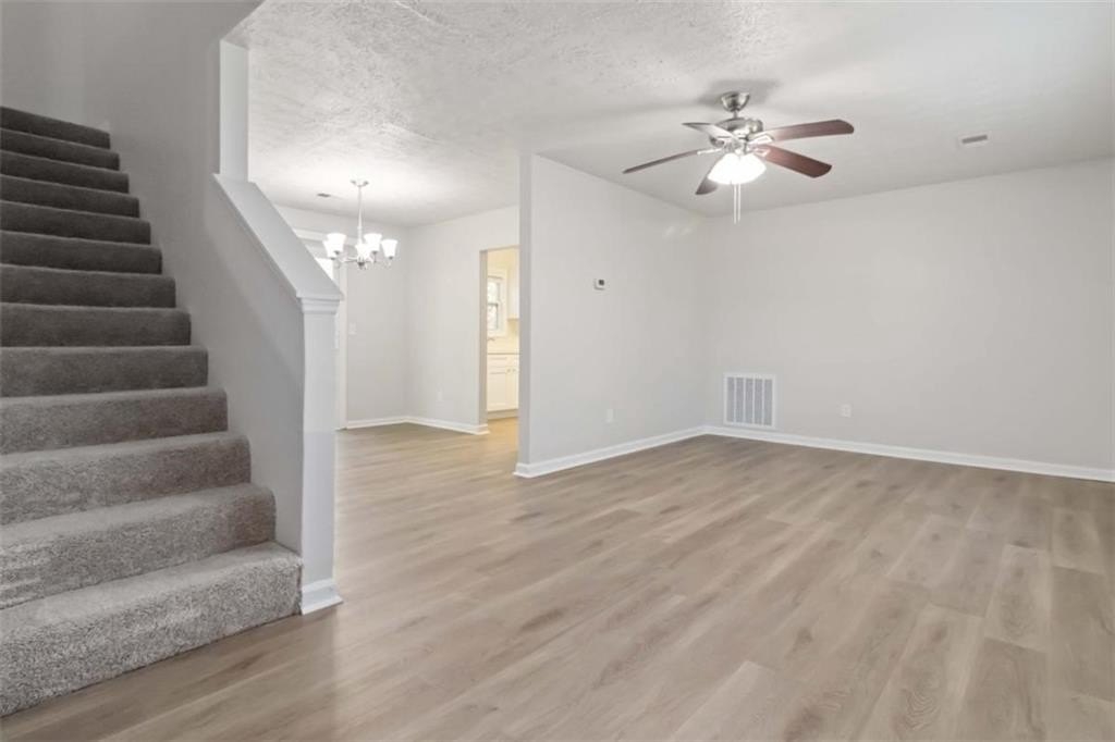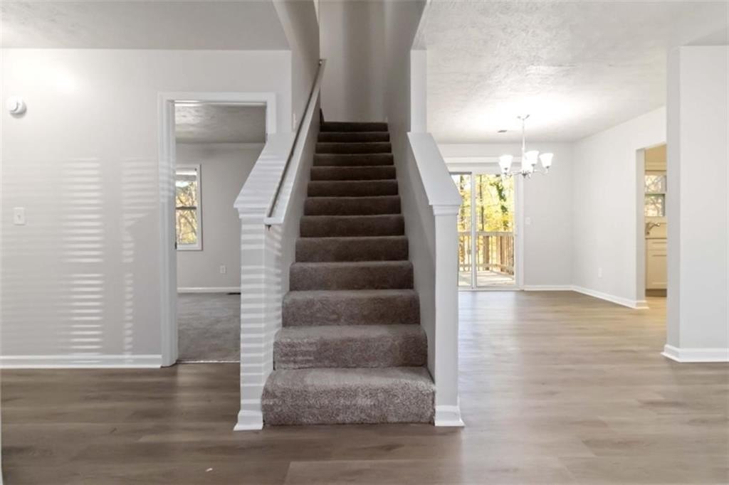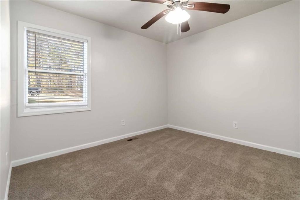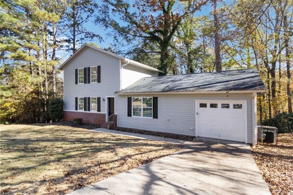 Welcome to this beautifully updated 3-bedroom, 2-bath home featuring 1,502 square feet of comfortable living space. Step inside to discover a perfect blend of modern updates and timeless charm. Freshly painted throughout, this home offers a bright, welcoming atmosphere that's ideal for everyday living and entertaining. The open-concept main level allows seamless flow between the living, dining, and kitchen areas. The kitchen shines with solid stone countertops, updated appliances, and new tile flooring-perfect for both casual meals and hosting. The separate living room features a cozy wood-burning brick fireplace, creating the perfect spot to unwind on cooler evenings. Upstairs, you'll find spacious bedrooms with plush new carpet, offering comfort and relaxation. Laminate floors downstairs make maintenance easy, while updated vinyl windows fill the home with natural light. Step outside to a large deck overlooking a private backyard, ideal for morning coffee or evening gatherings. Additional features include a one-car garage for parking or storage and tasteful updates throughout that make this home truly move-in ready. Don't miss your chance to own this thoughtfully updated home that perfectly balances style, comfort, and convenience!