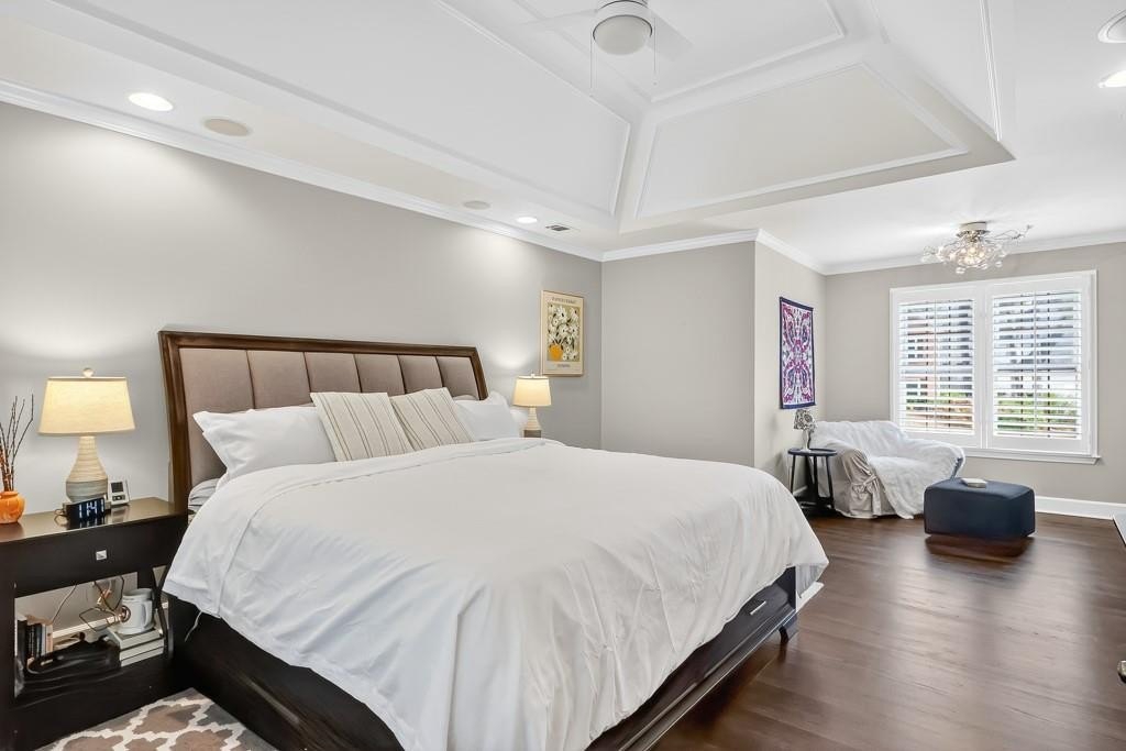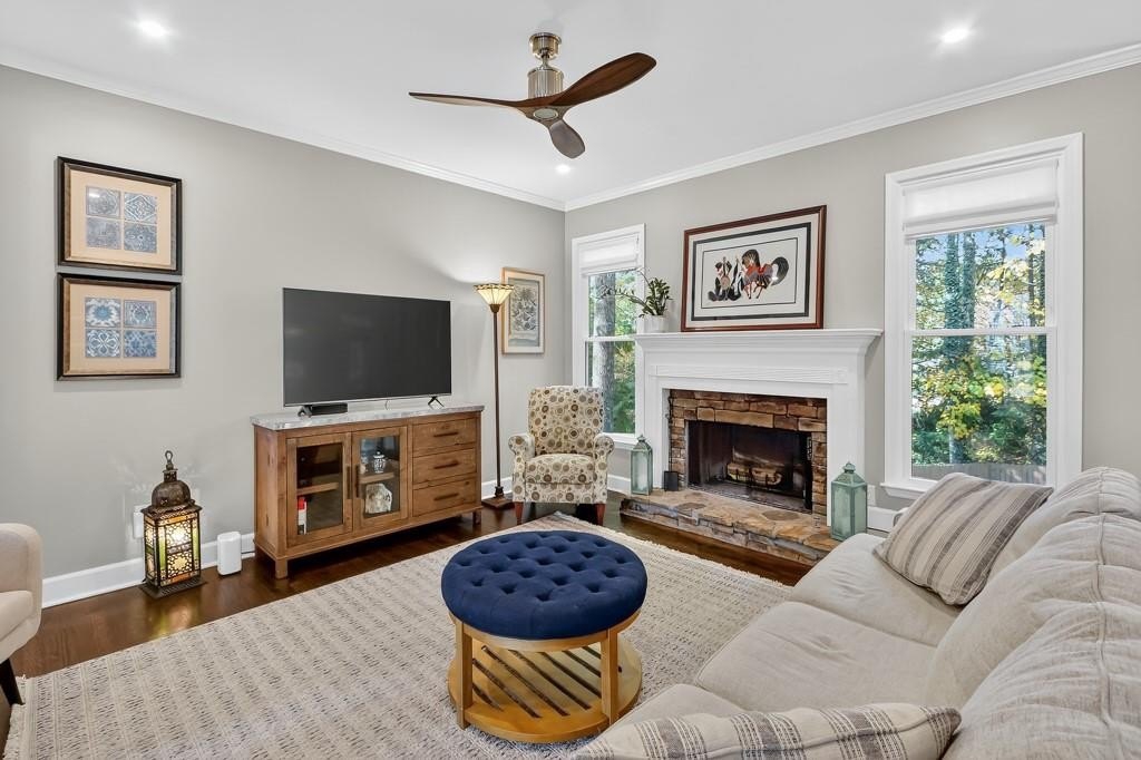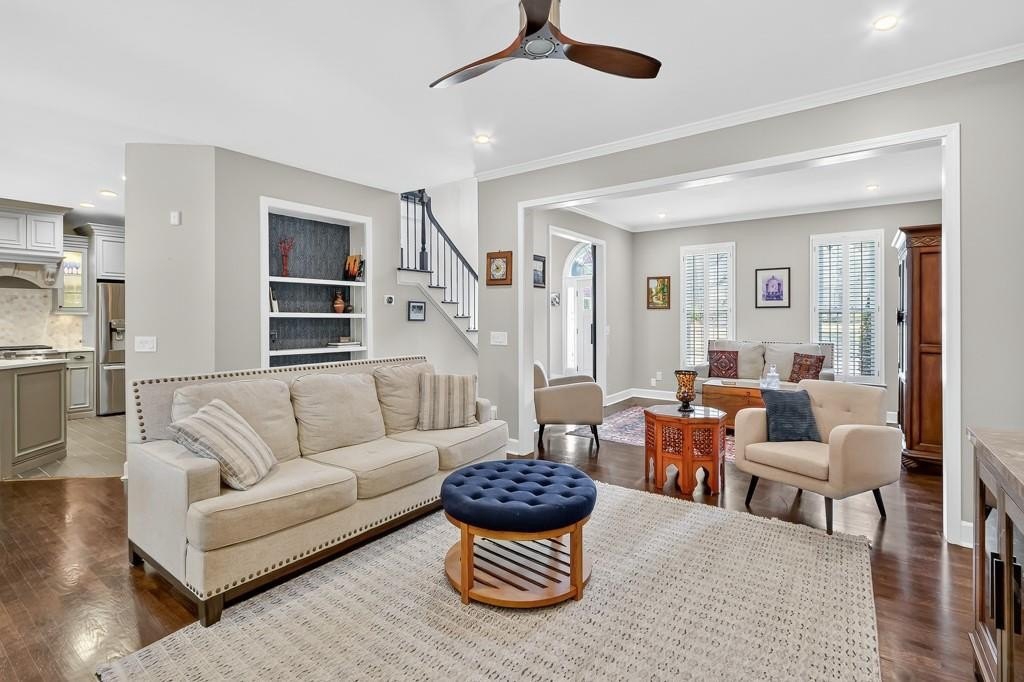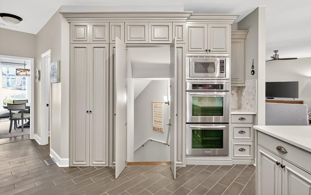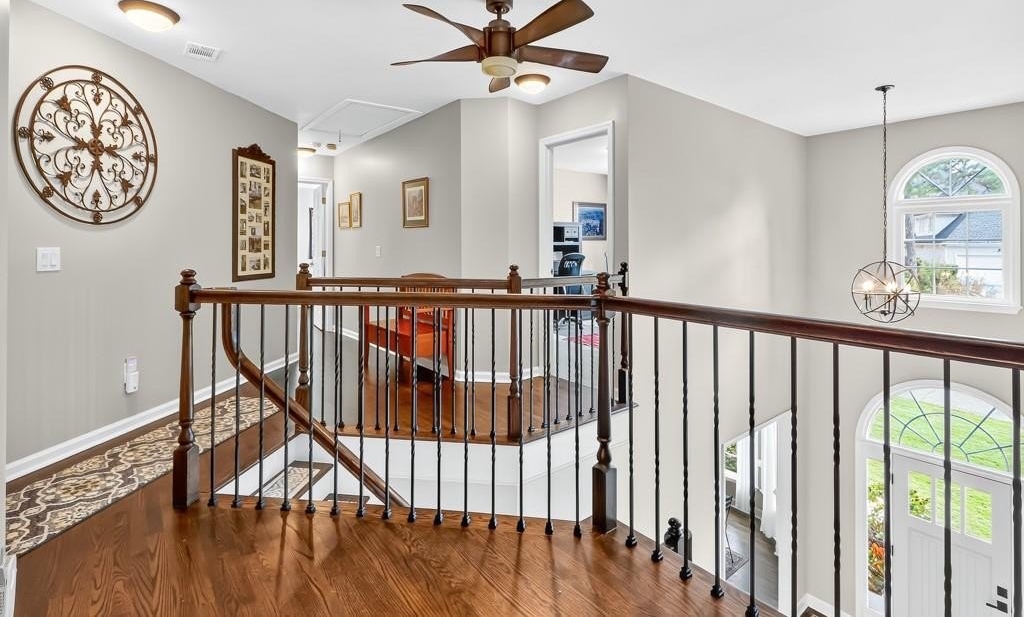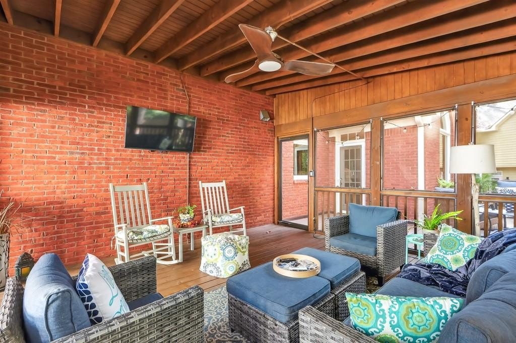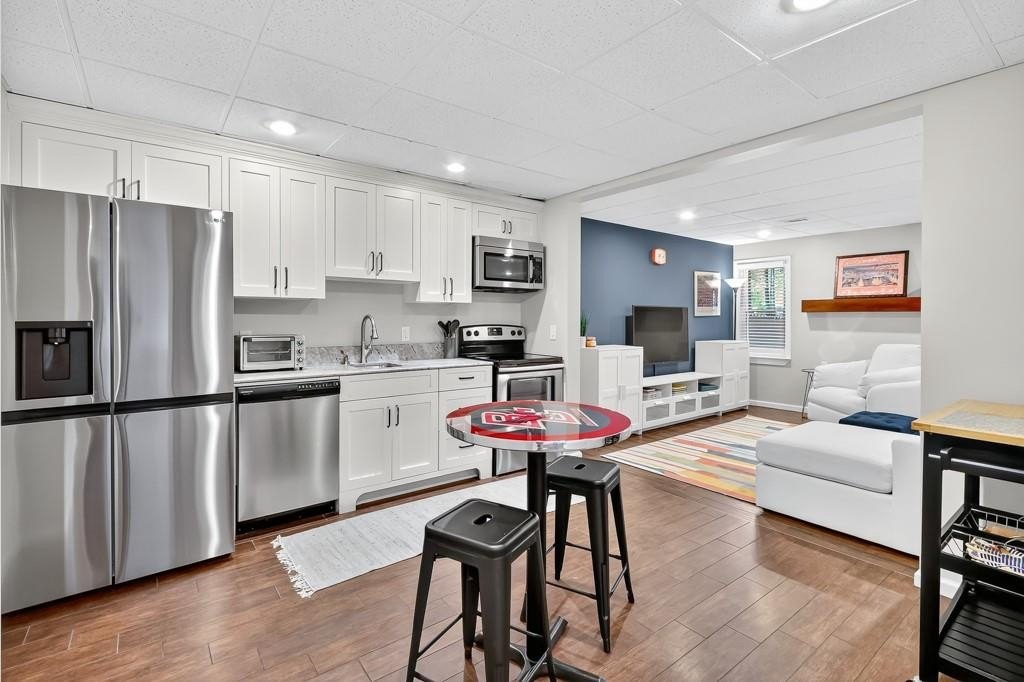 Welcome to this exceptionally rare 4-sided brick 5-bedroom, 3-bath home that combines timeless elegance with thoughtful modern updates. Sunlight streams through all-new windows (2025), illuminating hardwood floors that extend through the living room, dining area, and primary suite. The kitchen is beautifully updated with double ovens, a farmhouse sink, 6 burner gas cook top, and a hidden basement entry, seamlessly connecting style with function. Custom barn doors at the formal living room entry create a striking first impression, while a built-in bookshelf in the main living area adds warmth and character, and the open floor plan ensures effortless flow throughout the home. The floorplan is perfectly designed for multi-generational living, with a finished basement offering a full kitchen, bath, separate bedroom, office, and recreation area. The primary suite provides a luxurious retreat with a spa-inspired bath featuring a soaking tub and steam shower. Outdoors, a new deck and screened porch overlook a private, flat, fenced backyard with a firepit, ideal for relaxation and entertaining. Located in a highly sought-after swim and tennis neighborhood within a top-rated school district, this home perfectly balances comfort, elegance, and lifestyle in a thoughtful, elevated design.