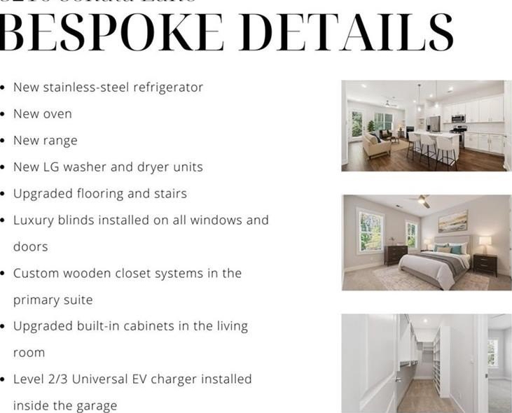 Updated Townhome in Prime Cumming Community! Just minutes from the shopping, dining, and entertainment at the Collection (1 mile) and Halcyon, with easy access to GA-400 and Ronald Reagan Blvd. Upgrades include brand new stainless-steel refrigerator, oven, and range, new LG washer and dryer units, upgraded flooring and stairs, luxury blinds installed on all windows and doors, custom wooden closet systems in the primary suite, upgraded built-in cabinets in the living room, and a Level 2/3 Universal EV charger installed inside the garage. You’ll love the bright and open floor plan with 10ft ceilings and the primary suite on the main. The generous-sized primary suite includes a walk-in closet, an ensuite bathroom with a double vanity, a separate shower, and a modern soaking tub. The gourmet kitchen boasts white cabinetry, granite countertops, stainless appliances, and a large center island with breakfast seating and an adjacent dining room. The family room with cozy fireplace and easy access to the outdoor patio area is perfect for entertaining your guests. The upper floor features 9ft ceilings, a large loft area ideal for a family room, three secondary bedrooms, and two full bathrooms. The sought-after 55+ community of Whisper Woods at Majors requires only one resident to be 55 or older and other household members, including children, are welcome to live in the home.