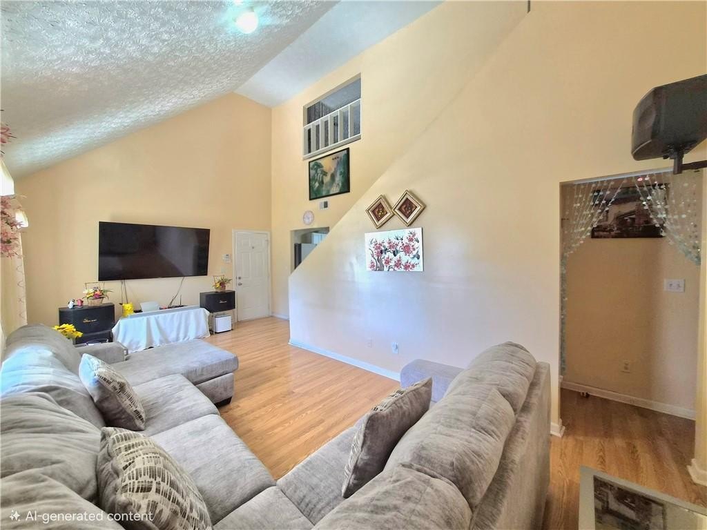 Welcome home to this charming and well-kept property featuring a bright kitchen with white cabinetry, granite-look countertops, and a modern mosaic backsplash. The semi-open dining area creates a seamless flow for everyday living, complemented by durable tile flooring and an abundance of natural light throughout the main level. The layout feels open yet cozy, offering a comfortable space to cook, gather, and relax.