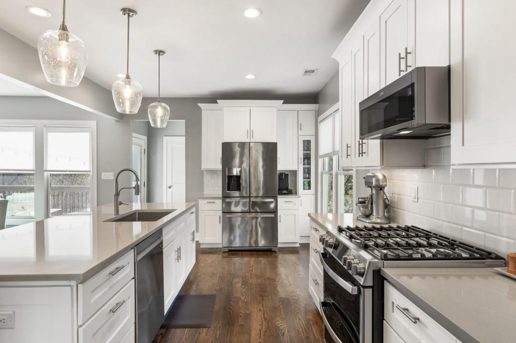 Welcome to 3793 Memphis Drive, a beautifully renovated home in the heart of Suwanee Town Center where an unmatched walkable lifestyle meets refined living. The main level of this home was taken completely down to the studs and rebuilt with today's clean, modern design, featuring hardwood floors throughout, upgraded lighting, new Craftsman-style trim, contemporary stair rails, and an open-concept layout that feels bright and inviting. The renovated kitchen offers a large quartz island, expanded pantry, upgraded cabinetry, and refreshed fixtures, while the primary suite provides a fully renovated spa-like bath with an enlarged shower and an expanded walk-in closet with custom shelving and an additional storage room. The secondary bath and laundry room also feature new tile and cabinetry, and the home includes thoughtful upgrades such as updated switches and outlets, Nest thermostats, and mechanical improvements including newer HVAC systems. Outdoor living is just as impressive with a new Trex deck, under-deck dry system, new concrete patio, and updated landscaping surrounded by a wooded rock border. Beyond the interior renovations, the lifestyle here is truly exceptional-Suwanee Town Center is right outside your door, offering immediate access to Town Center Park, the Greenway's miles of scenic trails, open greenspaces, and endless community activities. Enjoy concerts, festivals, food trucks, farmers markets, art installations, movie nights, outdoor fitness events, and year-round gatherings just steps away. Walk to local favorites like Suwanee Social House, Tequila Mama, La Belle Vie, Ippolito's, Tonari Ramen, Brown Bag Deli, coffee shops, boutiques, fitness studios, and more. Located in a highly rated Gwinnett County school cluster, this home blends luxury renovation, convenience, and an energetic live-work-play environment that is rarely available at this level of finish and walkability. Great, private location, backs up to the woods!