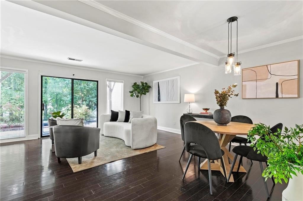 Seller to provide 1-0 buydown toward buyer’s financing. Terms and eligibility may vary. Nestled in the heart of Brookhaven, a stone's throw from the hustle and bustle of Buckhead, you will love the serene peace of your wooded private patio of this updated 2-bedroom, 1.5 bath home. Kitchen has beautiful new flooring, new oven and microwave, and beautiful new French doors to your little patio off the kitchen. Enjoy this open main living area with plenty of space for a large dining table and living room furniture for comfortable living and entertainment. Upstairs, the primary bedroom offers a closet that spans the full width of the bedroom, and a private balcony overlooking the wooded patio below. The second bedroom has a walk-in closet AND an additional storage closet. Plenty of additional closet space in the hall upstairs lends itself to ease of living. The full bathroom upstairs is updated with two separate vanities, tub/shower combo, and a washer/dryer that remains with the property. The 2 deeded parking spaces in front of the condo allow easy access to the main level. Enjoy a short walk to the amenities of pool and clubhouse. LONGTERM RENTALS ARE ALLOWED. In addition to all that Brookhaven has to offer, this quiet, well-managed Druid Knoll Community is the perfect location, within minutes of Buckhead/Lenox/Phipps Plaza to the west, and a quick zip over to I-85/N Druid Hills exit to the east, where you find the new Children's Hospital of Atlanta, Emory Musculoskeletal Institute, and many great shopping and dining options all around. Prime location at a very affordable price!! SPECIAL FINANCING OPTIONS AVAILABLE WITH PREFERRED LENDER.