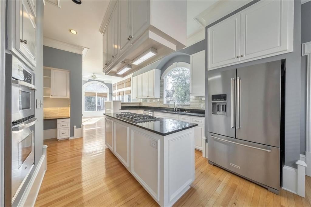Here it is! The perfect home your family has been looking for! Welcome to this stunning four-sided brick home tucked within a quiet cul-de-sac in one of East Cobb’s most desirable neighborhoods. Fully updated and impeccably maintained, this spacious 4 bed / 4.5 bath residence blends elegance, comfort, and timeless character at every turn. From the moment you step inside, you are greeted by fresh paint, gleaming hardwood flooring, and exquisite custom molding. The main floor offers an impressive layout with a formal dining room, a sitting room or office, and a sunfilled fireside living area framed by large windows that capture serene views. The beautifully updated kitchen boasts white cabinetry, stainless steel appliances, a built-in breakfast area, a butler’s pantry, and a unique dumbwaiter that adds charm and convenience. Upstairs, the oversized primary suite is a private retreat featuring a cozy sitting area, a spa-inspired bath with a luxurious shower, jetted tub, and two custom walk-in closets. Two additional upstairs bedrooms each include their own ensuite bathrooms, providing comfort and privacy for family and guests. The fully finished basement expands the living space with a second kitchen, a bedroom, a full bath, and a large flex room perfect for a media room or home gym. This level offers excellent potential for an in-law suite or rental income. Step outside to enjoy the peaceful surroundings from the expansive back deck or the lower screened-in porch overlooking the courtyard and tranquil fenced backyard. With Terrell Mill Park just steps from the community, outdoor recreation and green space are always within reach. This exceptional home delivers luxury, warmth, and convenience in a truly unbeatable setting.