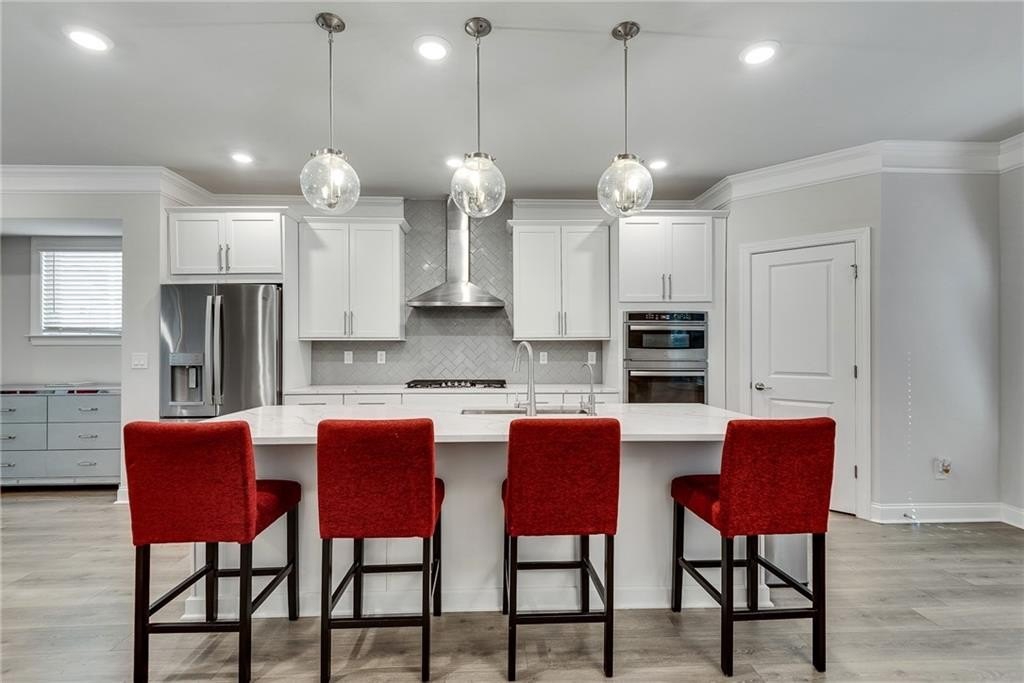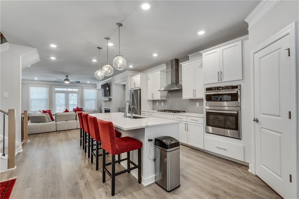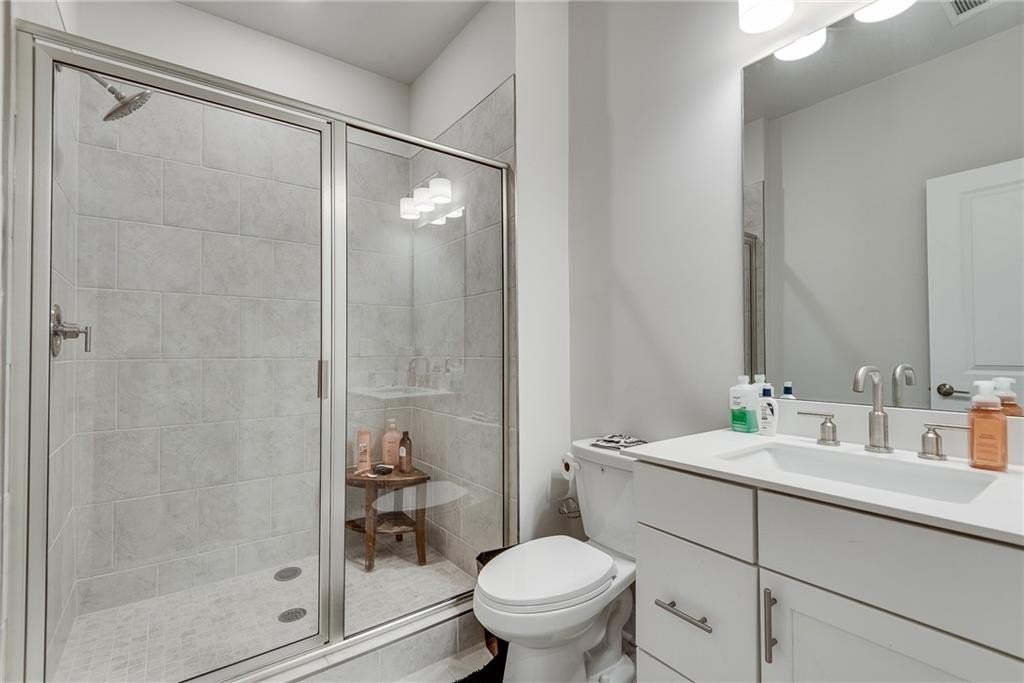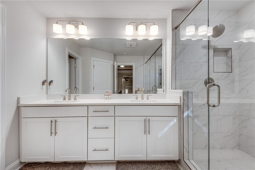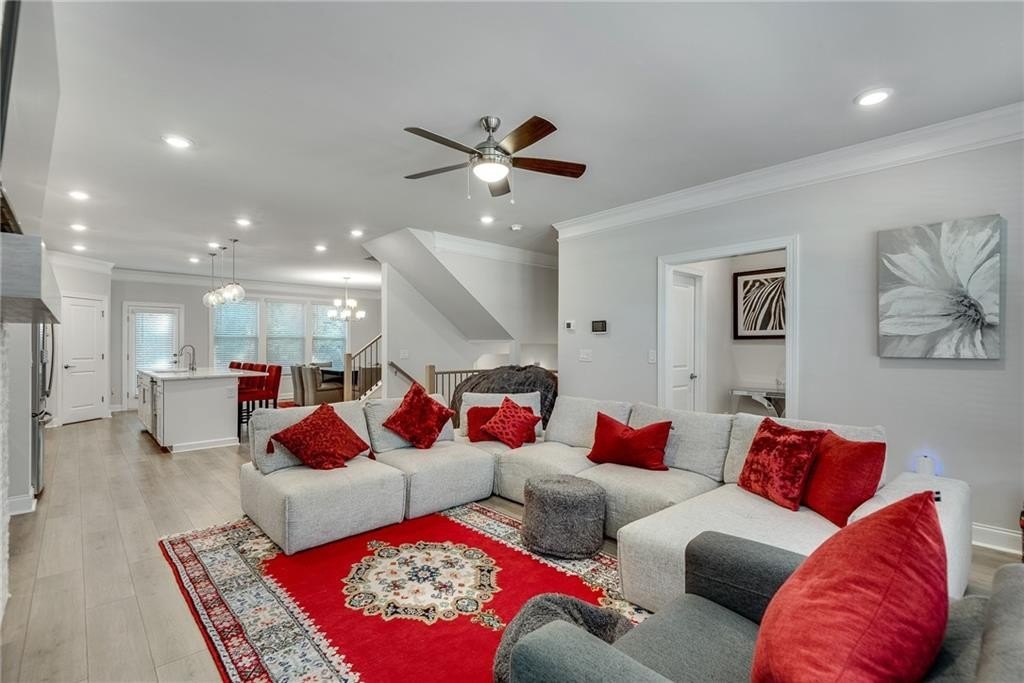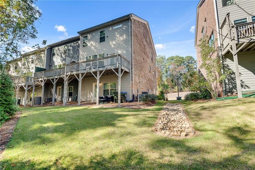 Modern, beautifully appointed, well maintained townhome in an amazing location! Nestled in a quiet, gated community yet close to everything you could wish for, this three level townhome offers luxury, comfort and convenience. Off the foyer on the entry level, is a spacious guest suite with a full bath, that would also be perfect as an office, fitness room or media room. Up the stairs to the main level you'll find a wide open and thoughtfully designed living space which includes a fireside family room, dining room and large gourmet kitchen. The kitchen offers plentiful, high-end cabinetry and quartz countertops for storage and meal preparation, stainless appliances including a vent hood and an oversized island with plenty of seating for casual meals and entertainment. At the end of the day, retire to the upper level owner's suite, which boasts a tray ceiling, double shower with seating, double vanity and huge master closet. The upper level, split bedroom plan also includes two additional guest rooms, another full bath and a laundry room. You will love the outdoor space! The roomy deck on the main level is perfect for grilling out, morning coffee or an evening glass of wine. The location puts you right in the center of tons of dining, shopping, parks and entertainment options and is minutes from 85, 285 and other major roads and highways. All of this in a private, secure and well maintained community. Don't miss the opportunity to make this your home! This home has an assumable VA loan at 5 percent, for Buyer's using a VA loan.