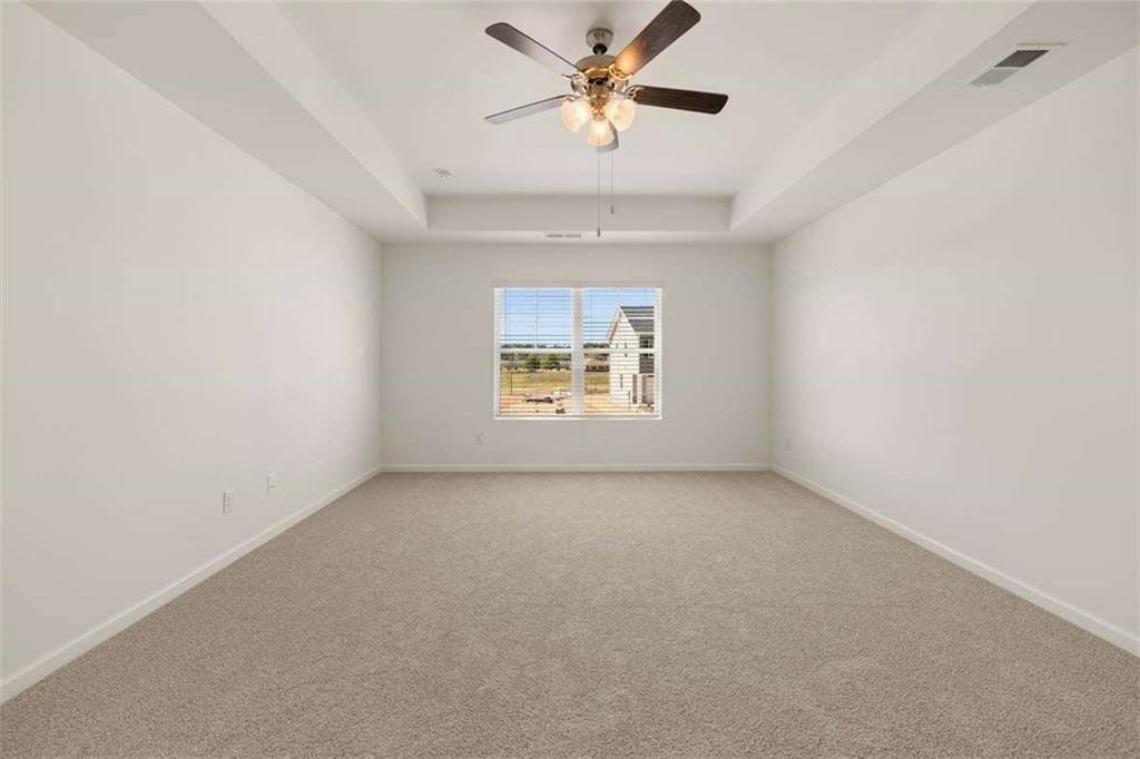 2-MINUTES TO I-85 & 30-MINUTES TO Hartsfield-Jackson Itn. Airport and Downtown Atlanta. 1-mile to Piedmont Newnan Hospital. Great Coweta County School District, lots of shopping close by and 3 miles to Historic Downtown Newnan. The community offers an exceptional amenities package including: a zero-entry pool, cabana, playground, walking trails, sidewalks, and underground utilities. The Saratoga floorplan at Poplar Preserve is a two-story home offering 3 bedrooms and two full baths plus a powder room and covering 2,001 sq. ft. of living space. The 2-car garage ensures plenty of space for vehicles and storage. Get open concept living at its best. As you enter, you are greeted by an expansive family room that is light and airy with plenty of room for seating, so everyone stays connected. The well-appointed kitchen features an island that allows for bar stool seating and includes quartz countertops, contemporary cabinetry and stainless-steel appliances for a modern feel. An adjacent casual dining area allows room to host the holidays or just enjoy a family dinner. The central staircase leads up to a private bedroom suite with extra closet space and a spa-like bath that includes dual vanities, shower and a separate garden tub. There is room to roam with large secondary bedrooms and a hall bath that no one will mind sharing. A convenient laundry and dedicated linen closet completed this timeless design. Our homes also come equipped with smart home technology, letting you control everything from lighting to temperature from the convenience of your smart device. Photos used for illustrative purposes and may not depict actual home.