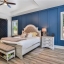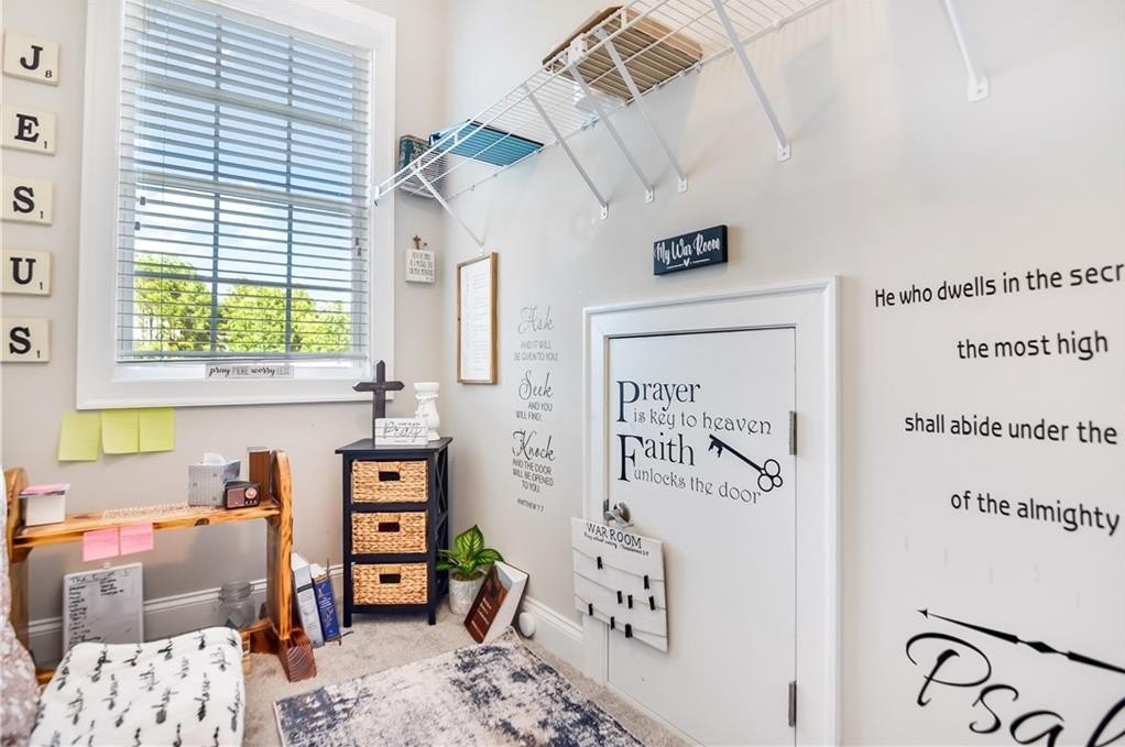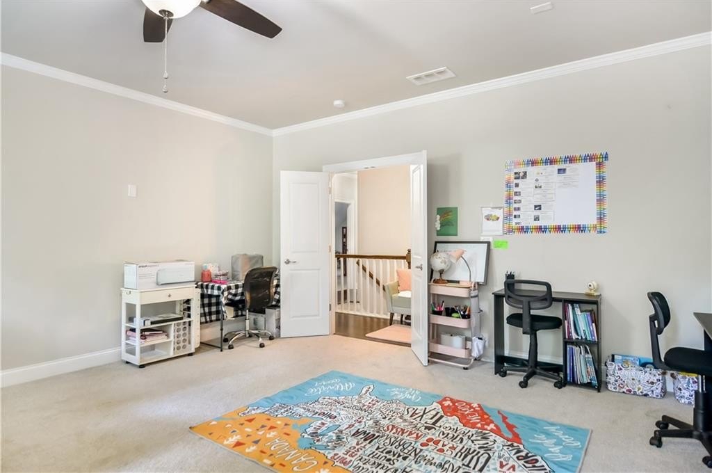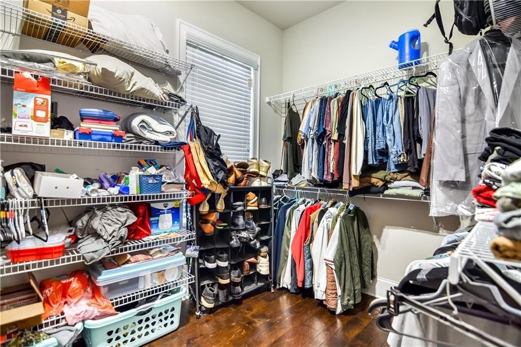 The main-level owner’s suite is a true retreat with a private sitting area, fireplace, walk-in closet, and a spa-inspired bathroom with double vanities, soaking tub, and separate shower. Upstairs, you’ll find spacious secondary bedrooms, a large media/bonus room, and an oversized storage closet.