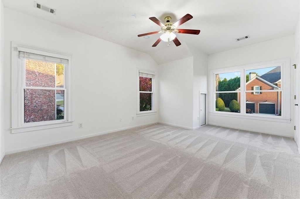 Upstairs, the oversized primary suite offers a peaceful escape with a sitting area, dual tray ceilings, two walk-in closets, dual vanities, a whirlpool tub, and a tiled shower. Three spacious secondary bedrooms provide plenty of flexibility for guests, family, or an office. The fully fenced backyard features custom hardscaping, an irrigation system, privacy and fruit trees, garden beds, and an extended patio that’s perfect for outdoor entertaining. Recent upgrades include new windows, carpet, kitchen appliances, and a water heater. The community features a pool, tennis and pickleball courts, and a nearby park just a short walk away. Nearby to the Silver Comet Trail and Smyrna Market Village. With easy access to major highways and an easy commute to Buckhead, Midtown, Downtown, and the airport, this home perfectly balances quiet comfort with city convenience. 0PEN H0USE 11/15 2:00-4:00