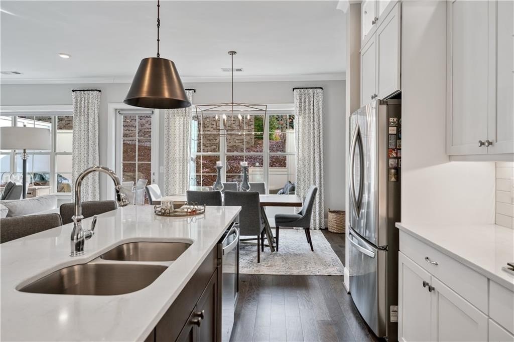 Welcome to a residence that perfectly blends sophistication, comfort, and convenience. This elegant two-story home exudes a single-family feel with its open-concept design, offering seamless flow between the living, dining, and gourmet kitchen spaces. Sunlight pours through expansive windows, highlighting high-end finishes and carefully curated details that make every room feel elevated yet inviting. The chef’s kitchen boasts a stunning custom pantry, sleek surfaces, and effortless functionality—ideal for both quiet mornings and stylish entertaining. Upstairs, a spacious loft provides the perfect retreat for work or leisure, while the primary suite serves as a luxurious sanctuary complete with a custom walk-in closet and spa-inspired bath featuring dual vanities. The professionally organized garage and abundant storage throughout reflect the home’s meticulous design. Situated near Kennesaw Mountain and just minutes from Marietta Square, this home offers an unparalleled balance of refined living and convenience. Every element has been thoughtfully crafted for those who value beauty, comfort, and location.