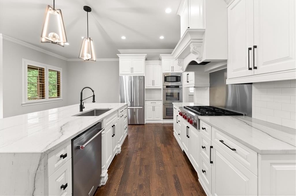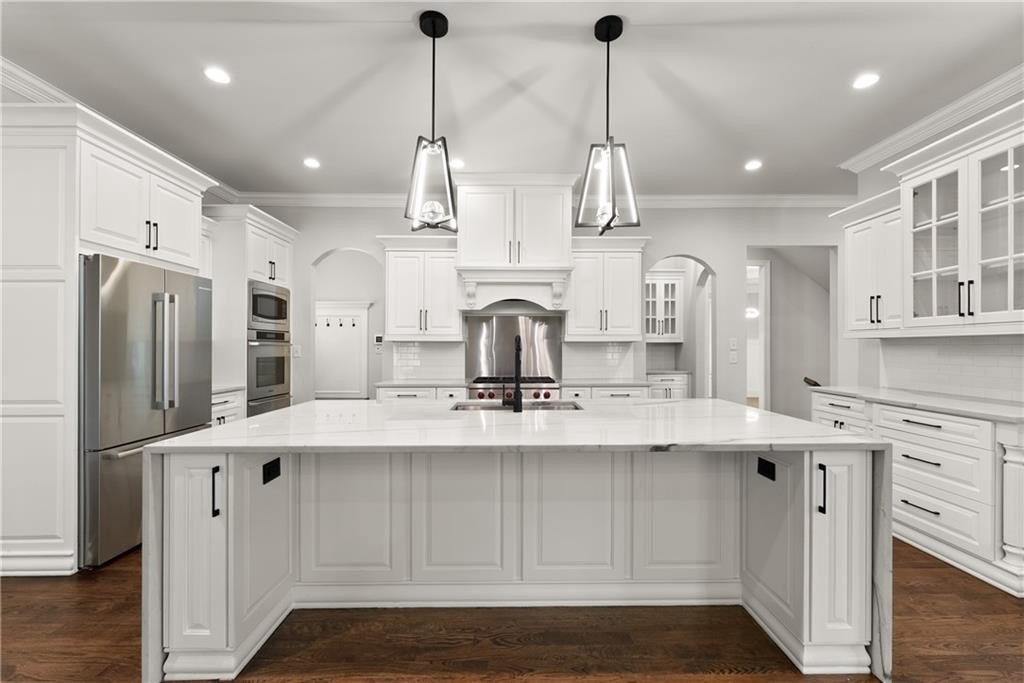 Your Next Chapter of WOW Starts Here — Discover a slice of Vickery Springs Magic! This isn’t just a house—it’s a whole vibe. Sitting in the super popular and welcoming neighborhood of Vickery Springs (where neighbors wave and share baked goods), this custom home sits on a private, lush 0.62-acre lot. With four sides of brick, a 3-car side-entry garage, and landscaping that looks straight out of a magazine, this home has serious curb appeal. Once inside you'll be pleasently surprised at the high end architectural detail including coffered ceilings, gorgeous built-ins, crown molding, and much more. Begin with the stunning kitchen—it checks off all the boxes on anyones wish list for the perfect place to develop your culinary skills. You’ll find two waterfall quartz islands, a high-end Wolf cooktop that makes you feel like a pro chef, and custom cabinets that keep everything looking neat and stylish. With open views to the oversized family room you know you will be in the ideal space for entertaining and/or enjoying the family while preparing meals. The separate dining room is ready for intimate family dinners or those all important family gatherings. At the end of the day retreat to your own private getaway with a spa-style bathroom where every detail has you in mind as well as the gorgeous oversized custom Artisan closet that promises to make the lady of the house very happy. Spacious secondary bedrooms have their own thermostats—so no more arguing over the temperature and ample closets, ideal for family members or guests wanting adequeste personal storage! Downstairs, the finished basement is the ultimate hangout spot with a full kitchen, bedroom, bathroom, a magnificant home theatre, game room, and even a gorgeous sauna with double shower. The perfect defined spot for entertaining or just some extra living space! Step outside to a beautiful paver patio and a peaceful backyard with multiple patios, a covered porch, and stone walkways—perfect for relaxing, grilling, or chasing fireflies. The location couldn’t be better—you’re just minutes from Vickery Village, The Collection, Halcyon, and right across from Midway Park. The neighborhood has great amenities, including swim and tennis, a clubhouse, and super friendly neighbors. Plus, you’re in the award-winning West Forsyth School District! This home truly has it all—space, comfort, fun, all with a little touch of class! Don’t wait—schedule your showing before someone else grabs this amazing home!