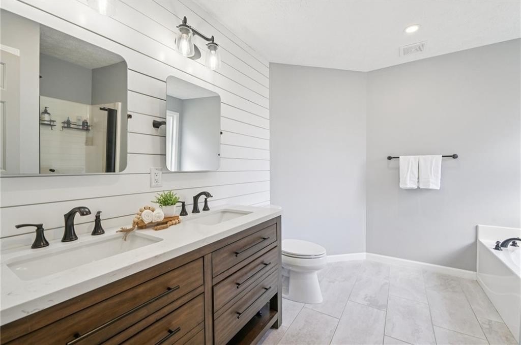 This home qualifies for 100% financing, making it an incredible opportunity to own a beautifully updated and maintained property with major system upgrades and the freedom of no HOA living. Improvements include brand-new HVAC units (2025), new windows throughout, a new water heater (2025), new septic lines installed and tank pumped 2025, giving buyers peace of mind for years to come. Home was totally renovated in last 5 years. Engineered hardwood floor on main for durability, every room has been redone with high end finishes. Enjoy thick granite countertops, subway tile backsplash, a deep farmhouse stainless-steel sink, gas cooktop, double ovens, and an abundance of new cabinetry, including unique and practical corner shelving that maximizes storage. The main level features a welcoming living room anchored by a white stone gas-starter fireplace, accented with shiplap detailing and complemented by custom wooden built-ins and a matching mantle—a true focal point of the home. A separate dining room provides an ideal space for gatherings, while the centrally located kitchen combines charm with functionality. The main level also includes a stylish half bath and a well-designed laundry room showcasing a shiplap wall and built-in wooden shelving around the washer and dryer—perfect for organization and convenience. A convenient door off the kitchen leads directly to the backyard, making grilling, outdoor dining, and entertaining a breeze. From the moment you step inside, you’ll appreciate the warmth of the hardwood floors, detailed crown molding, and the inviting layout designed for both everyday living and effortless entertaining. Upstairs, the primary suite is a true retreat with a tray ceiling and a custom walk-in closet with built-ins that maximize storage. The ensuite bath includes a dual vanity, accent shiplap wall, walk-in shower, and a relaxing soaking tub framed by a large frosted window for natural light and privacy. Two additional secondary bedrooms offer comfortable space, and the very large bonus room —features two windows, a closet, vaulted ceilings, and currently used as a bedroom—provides exceptional flexibility as the fourth bedroom, guest suite, home office, or recreation space. All secondary upstairs bedrooms are serviced by a well-appointed full bath with a shower/tub combo and glass shower doors.